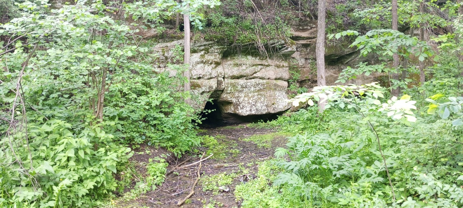 На противоположном склоне оврага есть два входа в глубину недр и одновременно в глубину веков. Возле них — огромные глыбы, отломившиеся от свода и лежащие на страже. Они упали уже очень давно и заросли мхом. Огибая этих молчаливых стражников, заходим под землю. Нужно сильно наклоняться, иначе в темноте зацепишься головой за потолок пещеры. Своды низкие, стены неровные. Дневной свет остаётся за спиной. Без освещения уже ничего не видно. Здесь хозяйка — вечная тьма. Раньше освещение в штольнях было факельное. Факелы дымили. Поэтому до сих пор на сводах остался толстый слой копоти.