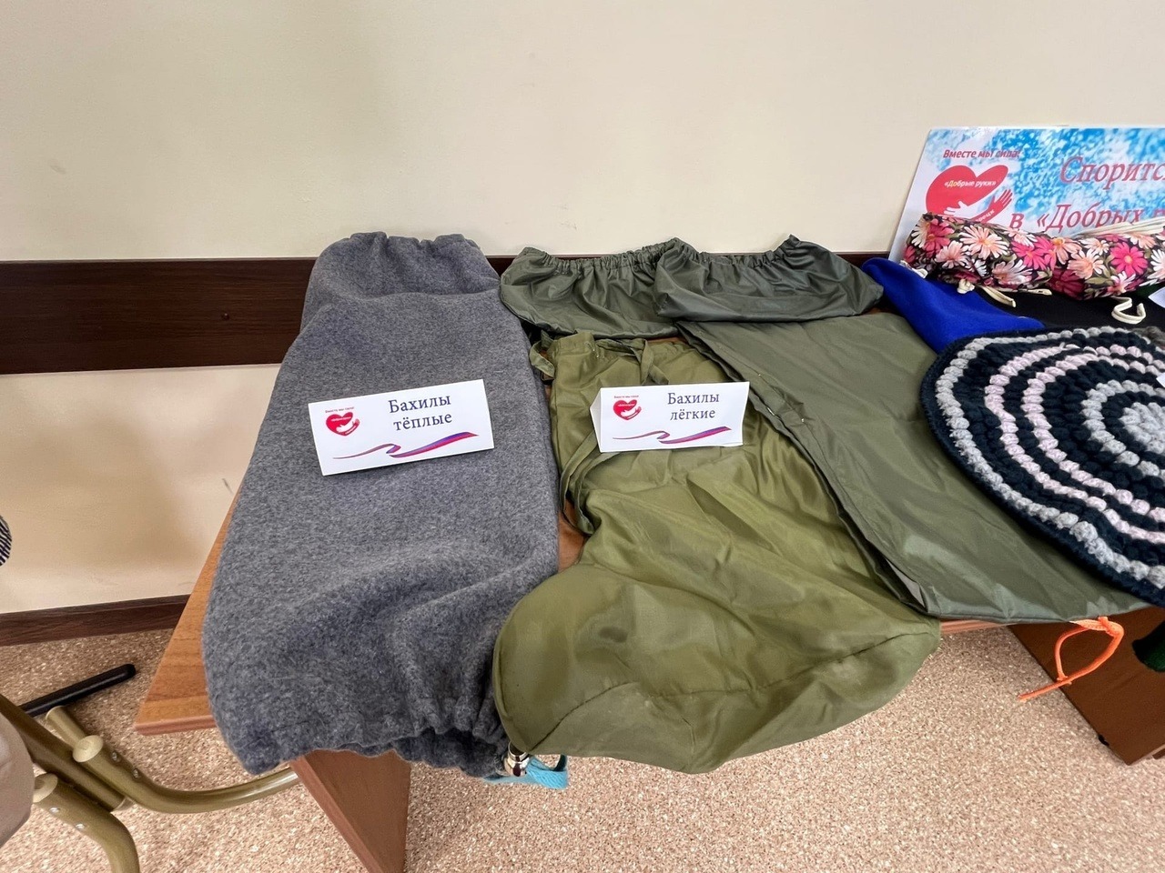 Начали с шитья специальных бахил из флиса, бязи на раненые ноги. А затем шили госпитальные рубашки, белье, распашные брюки, полотенца, косынки, ортопедические подушки, тренажеры для рук, вязали специальные носочки на раненые руки и ноги и многое другое. Конечно, посылали и мед, и сладости, и сухое печенье и сушки.