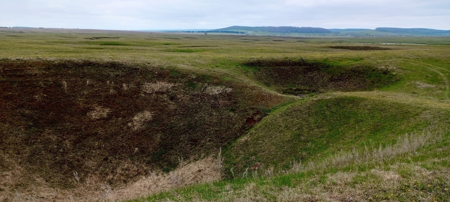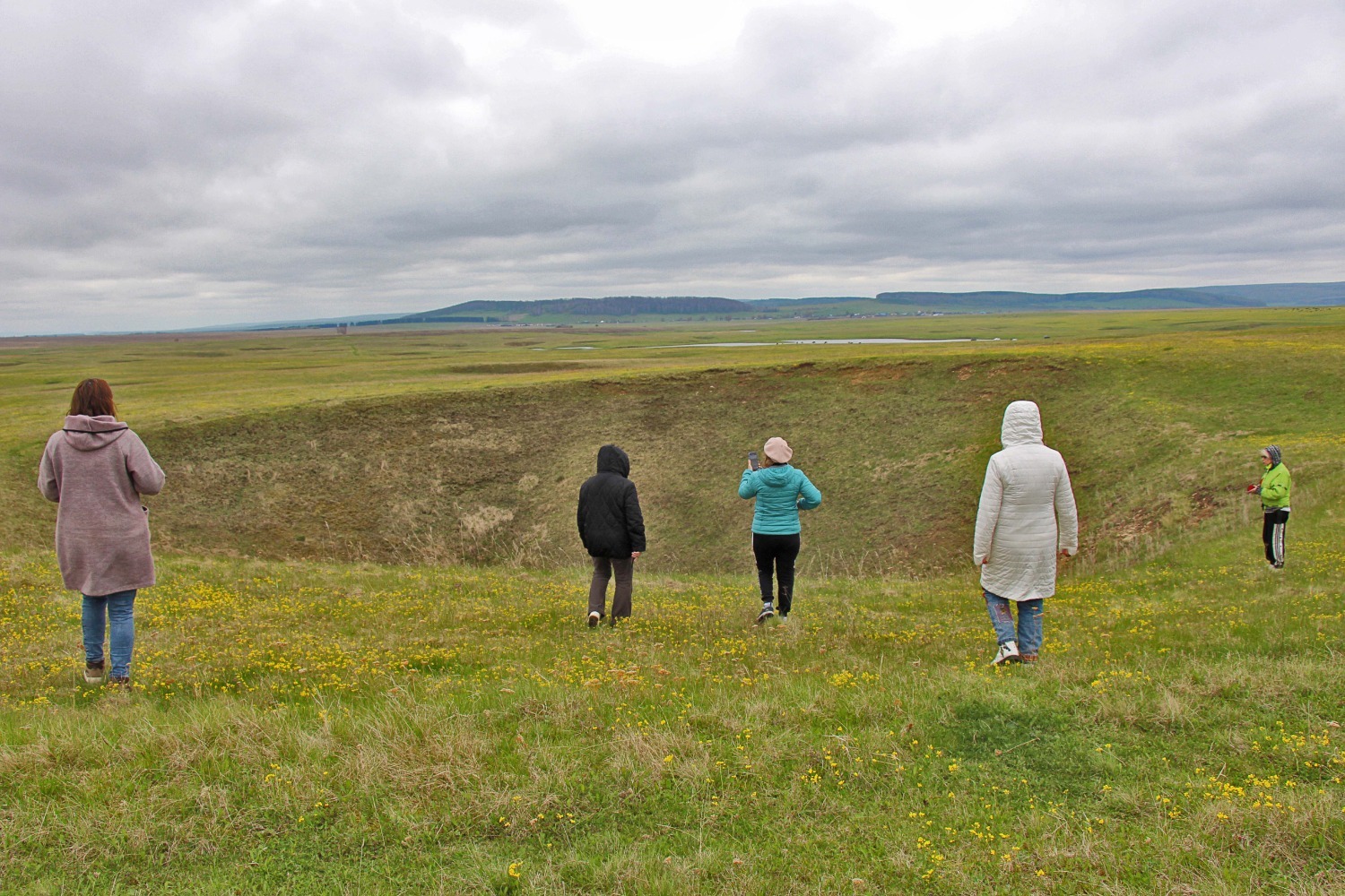 В Башкирии есть удивительное место. Находясь там, можно легко представить себя космонавтом на поверхности Луны. Ну, или мышью на громадном куске сыра с дырками. Уникальное карстовое поле с лунным пейзажем расположено возле села Улькунды в Дуванском районе на северо-востоке республики. На нём около 300 кратеров — десятки крупных и сотни более мелких. Поверхность поля безлесная, и, сколько хватает глаз, до самого горизонта, видны круглые воронки — некоторые из них заполнены водой, но большинство просто аккуратно задернованы. Масштабы поражают воображение — люди, стоящие рядом с кратером, выглядят, как маленькие разноцветные муравьи. А человека, спустившегося на дно воронки, можно и не заметить. Полнейший сюрреализм.