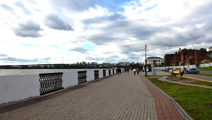 По отремонтированной пешеходной лестнице можно дойти до центральной площади Ижевска. Несколько лет назад была произведена ее масштабная реконструкция, на площади появился большой поющий фонтан, красивые цветущие аллеи, зоны отдыха и кафе, в которых прямо в печи готовят главное национальное блюдо — перепечи с разными начинками. Обязательно попробуйте.