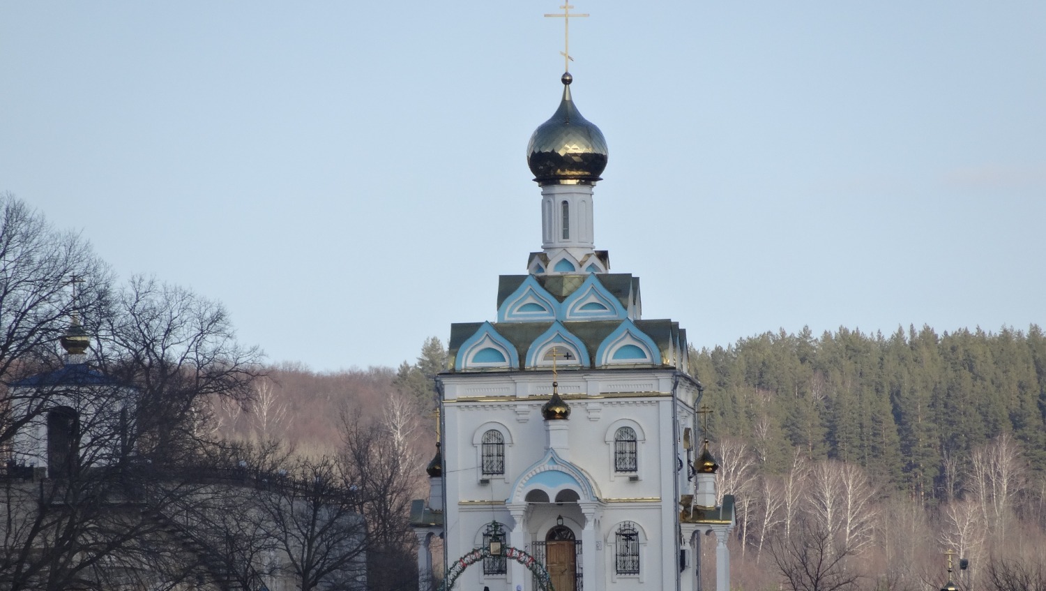Рядом с источниками на возвышенности находится церковь Табынской иконы Божьей матери. Можно подняться наверх по лестнице, прогуляться по окрестностям, осмотреть местность с высоты. В скале под церковью расположен небольшой грот — в нем хранится копия иконы.