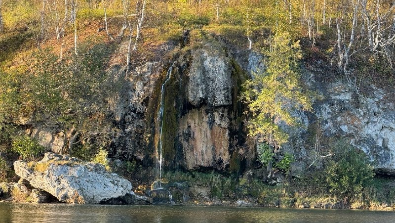 Можно устроить пикник на пологом берегу напротив водопада, сделать атмосферные фото на фоне скал и воды.