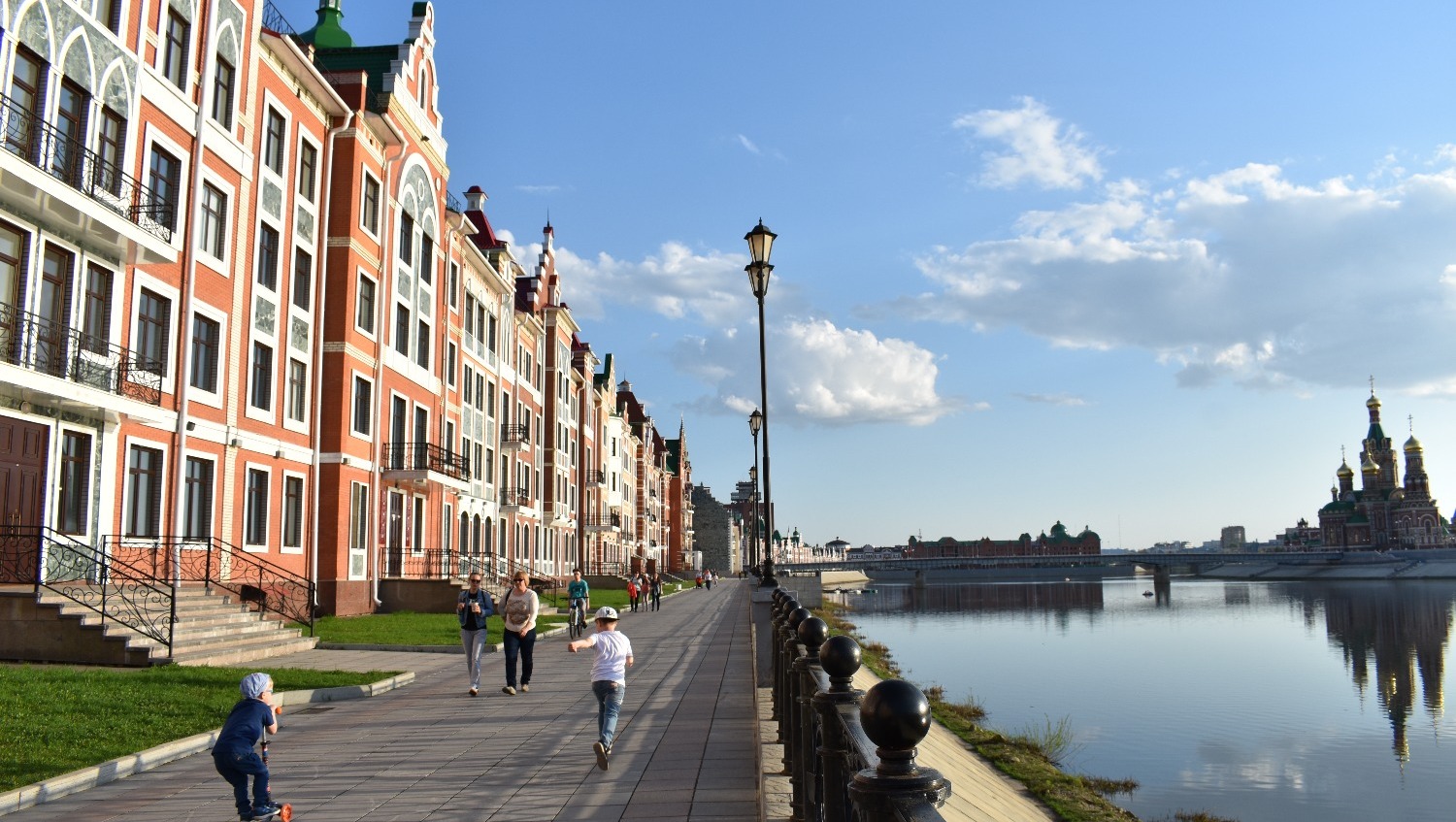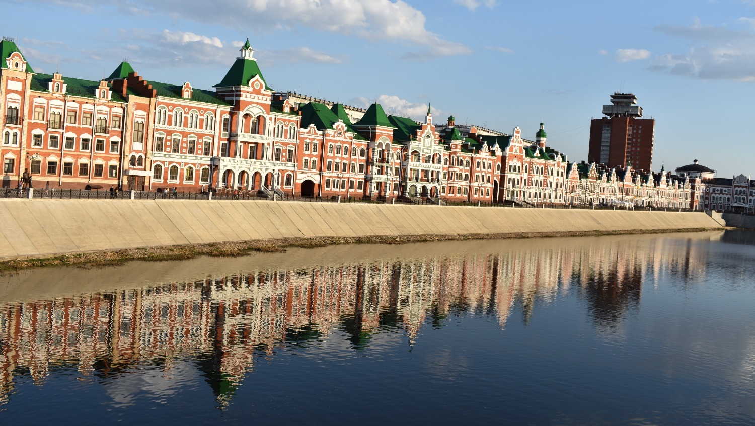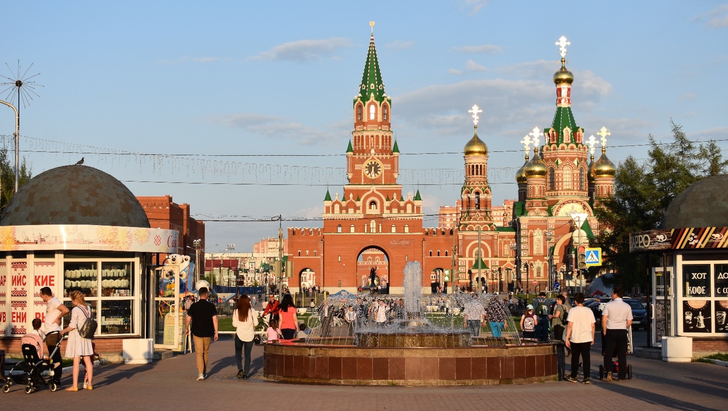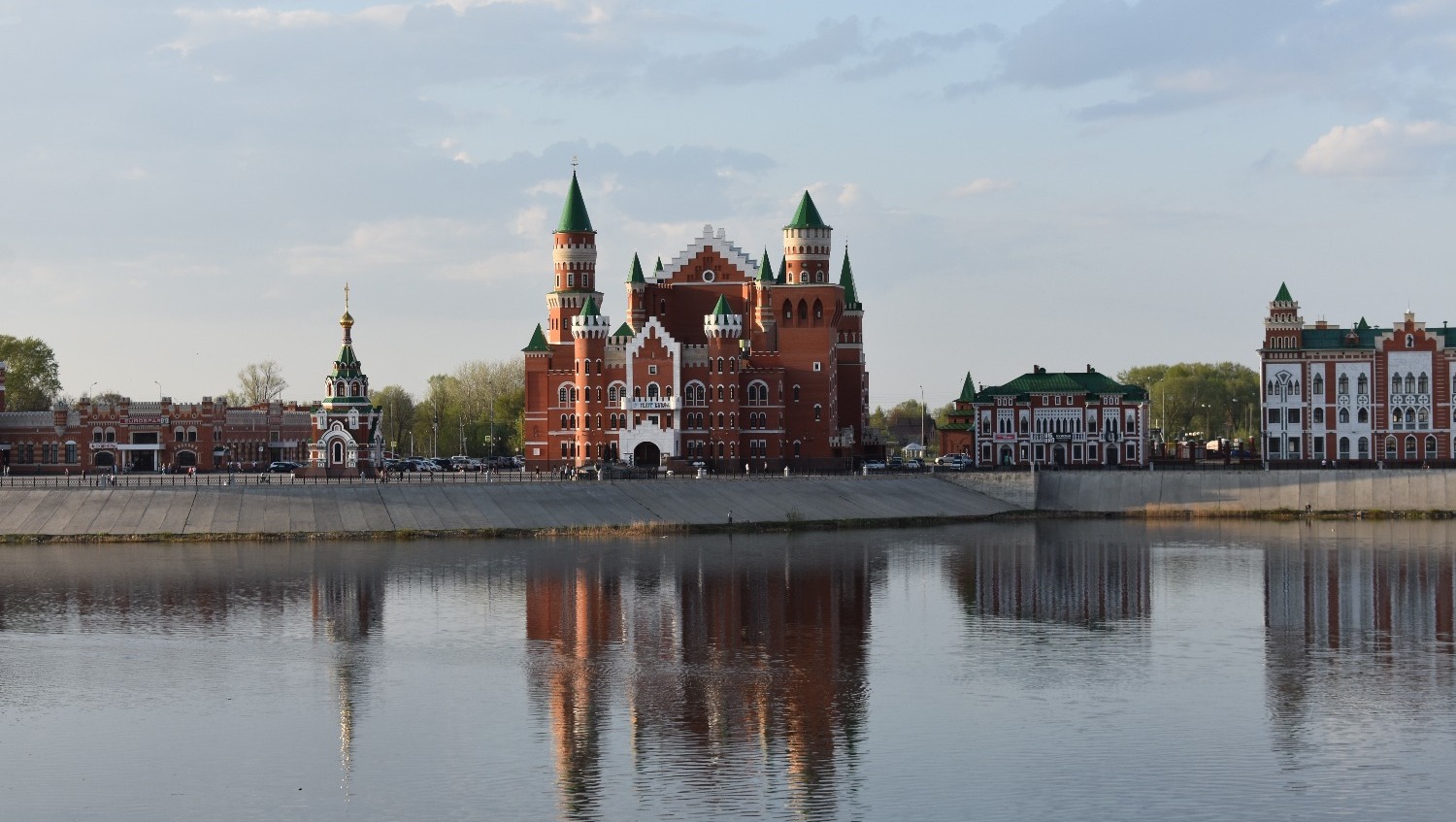 Когда приезжаешь туда впервые, не устаешь удивляться. Центр Йошкар-Олы поражает архитектурным разнообразием. Как будто находишься не в России, а где-то в центре Европы. Чего только стоит набережная реки Малой Кокшаги, напоминающая Брюгге или Амстердам. Вдоль берега красуются невысокие домики из красного кирпича со шпилями и лепниной. Отдельное внимание на себя обращают Дворец бракосочетаний, Театр кукол и комплекс 12 апостолов. На последнем здании каждые три часа происходит настоящее волшебство — из Иерусалимских ворот верхом на осле выезжает Иисус, за которым следуют 12 апостолов. Шествие продолжается несколько минут и привлекает толпы туристов.
