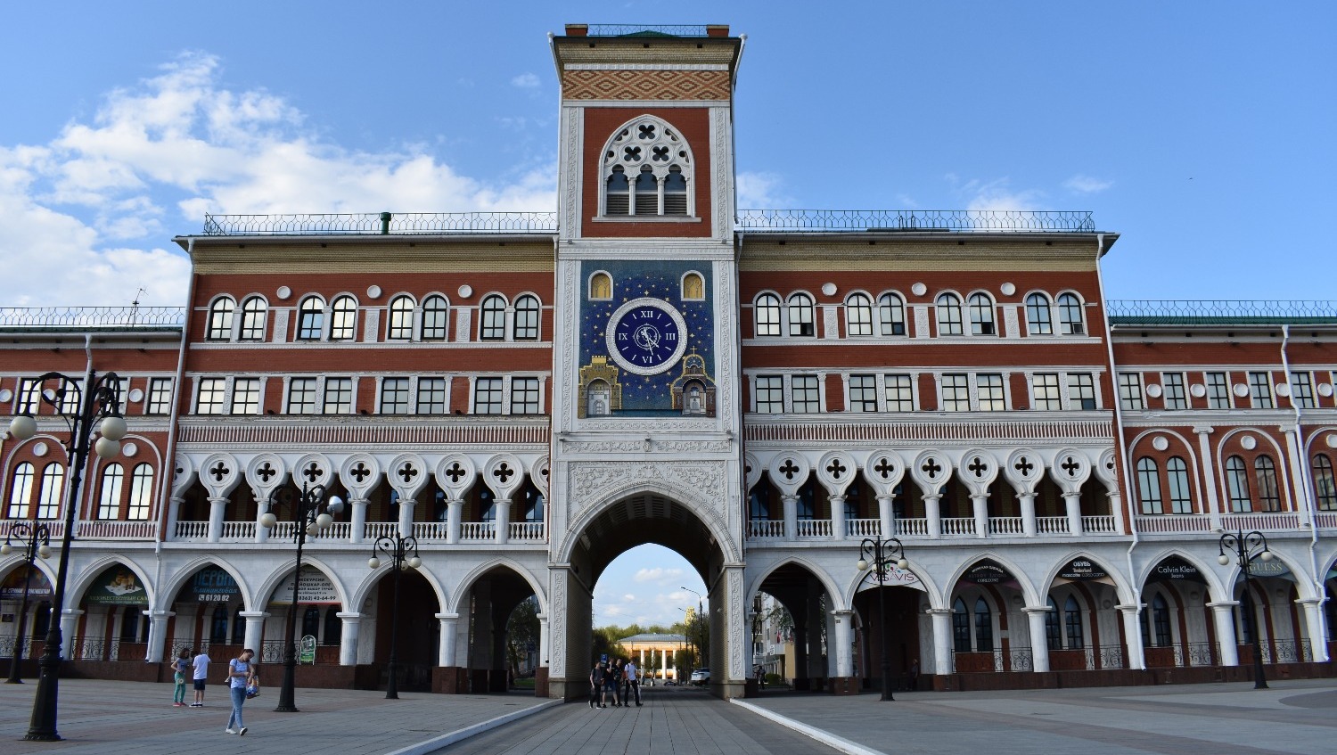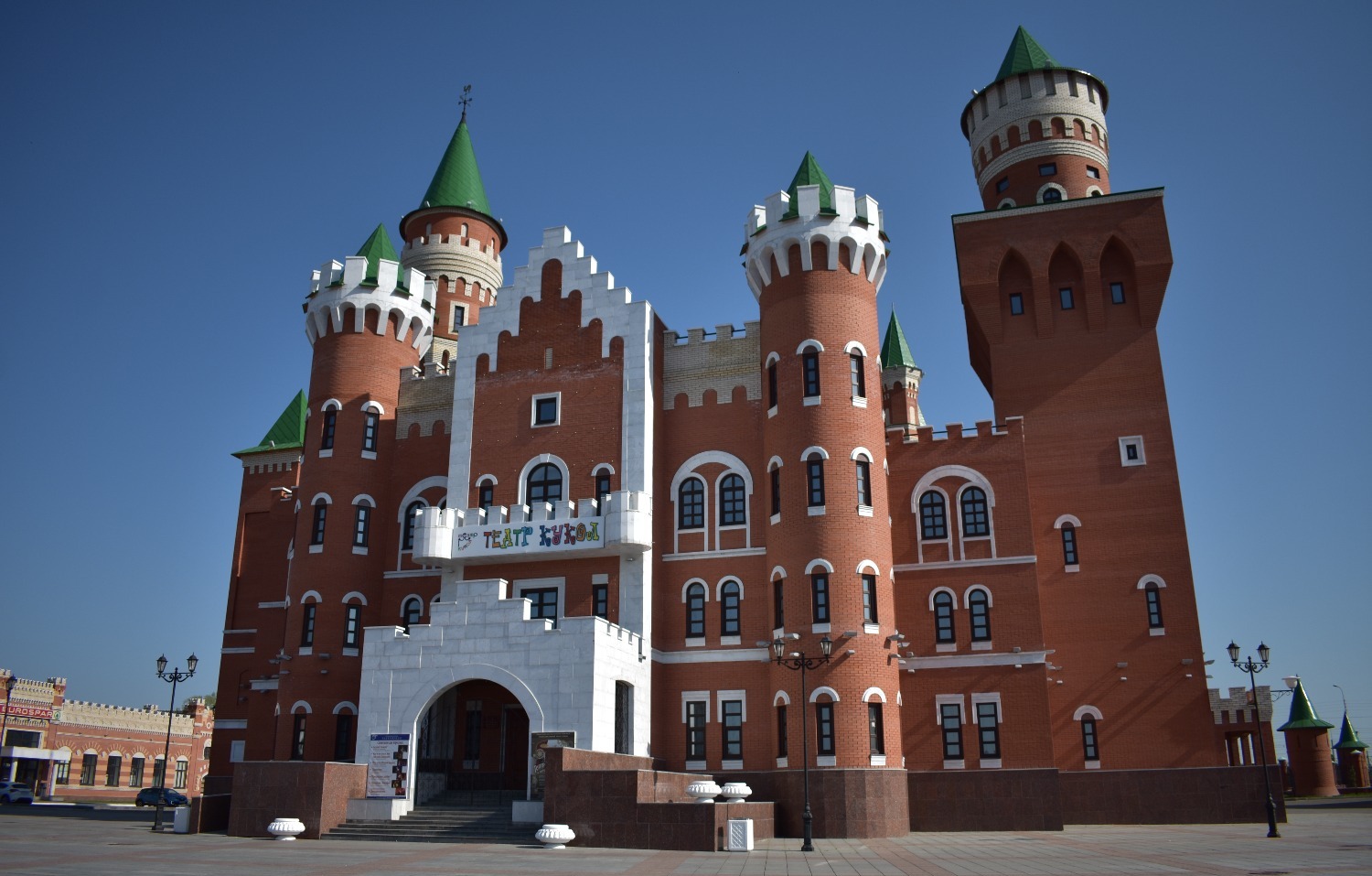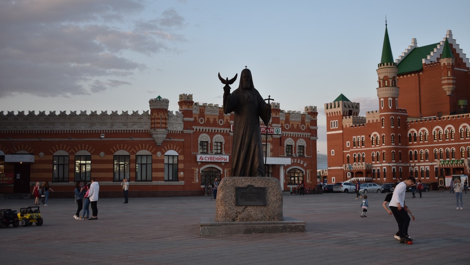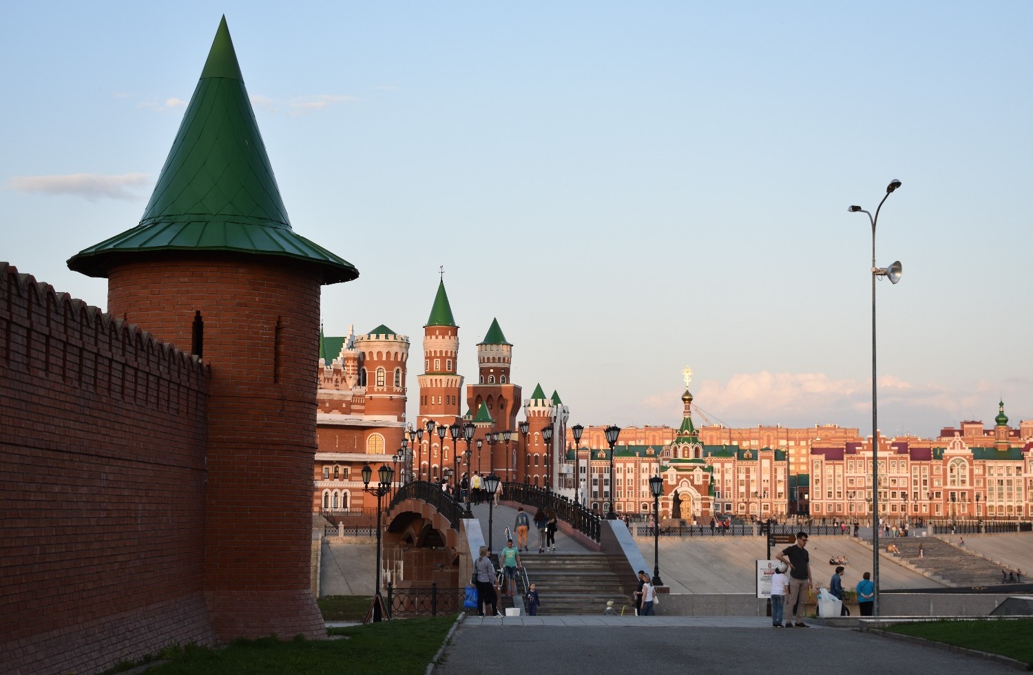 Когда приезжаешь туда впервые, не устаешь удивляться. Центр Йошкар-Олы поражает архитектурным разнообразием. Как будто находишься не в России, а где-то в центре Европы. Чего только стоит набережная реки Малой Кокшаги, напоминающая Брюгге или Амстердам. Вдоль берега красуются невысокие домики из красного кирпича со шпилями и лепниной. Отдельное внимание на себя обращают Дворец бракосочетаний, Театр кукол и комплекс 12 апостолов. На последнем здании каждые три часа происходит настоящее волшебство — из Иерусалимских ворот верхом на осле выезжает Иисус, за которым следуют 12 апостолов. Шествие продолжается несколько минут и привлекает толпы туристов.