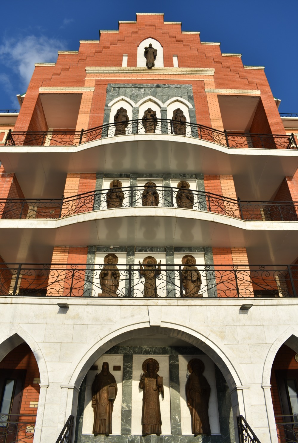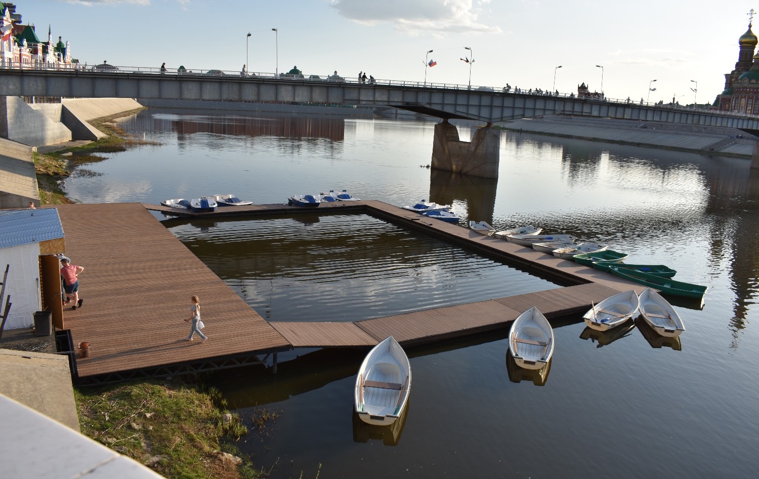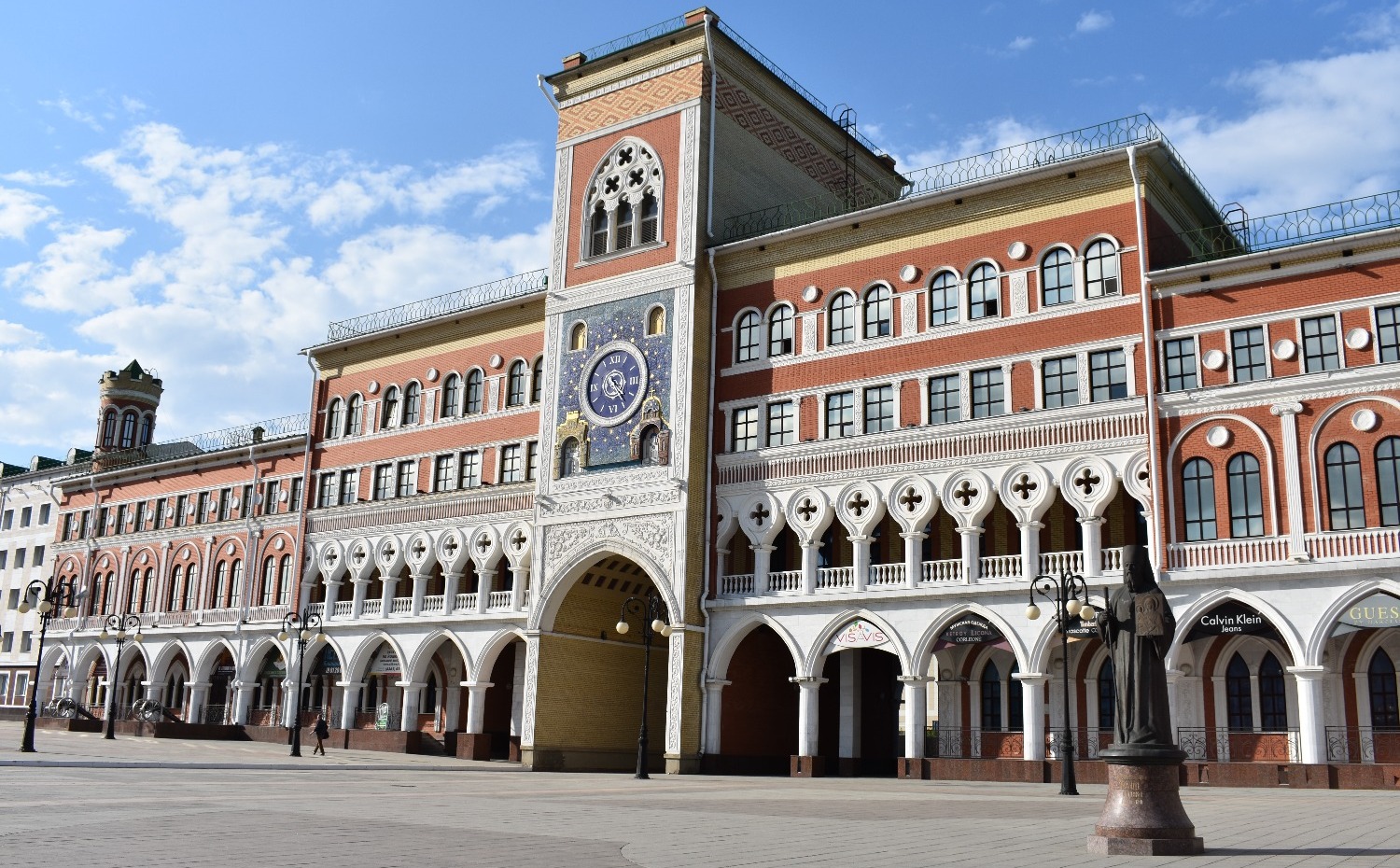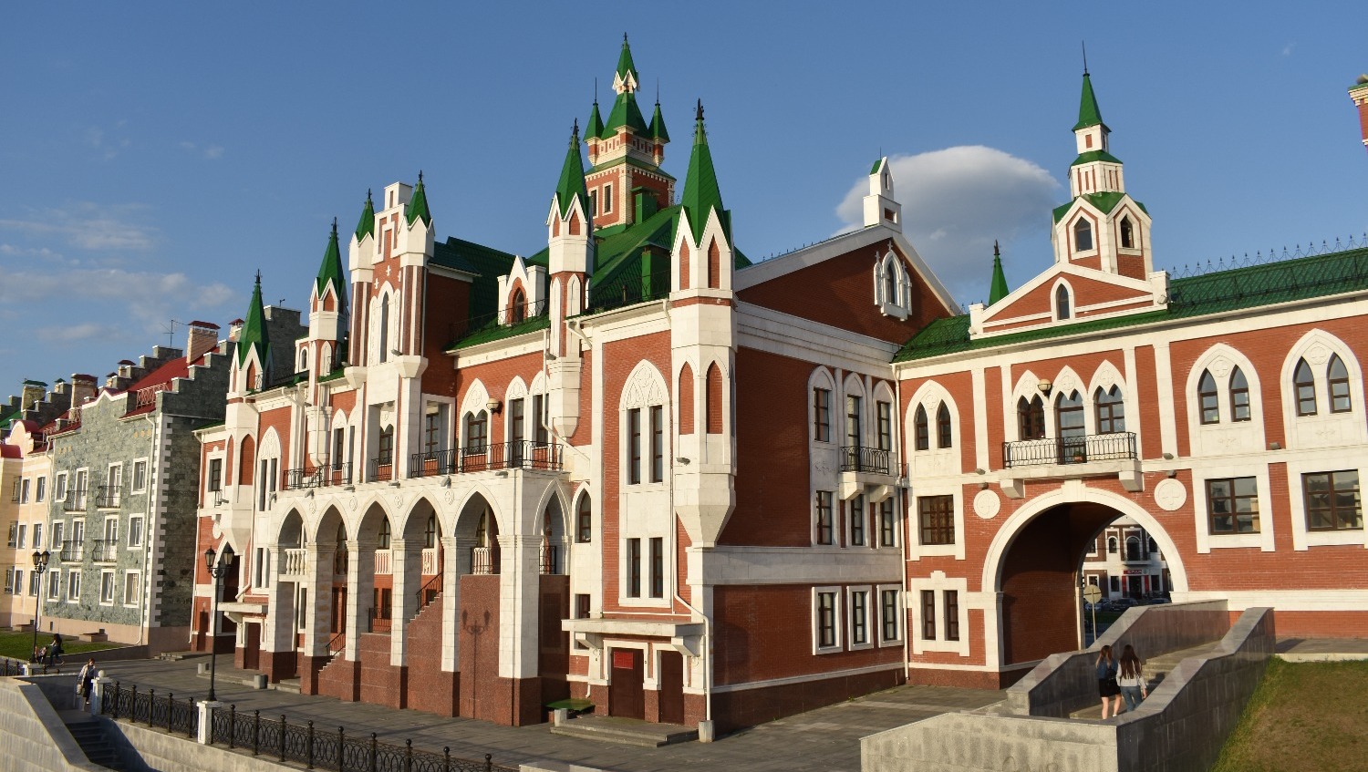 Когда приезжаешь туда впервые, не устаешь удивляться. Центр Йошкар-Олы поражает архитектурным разнообразием. Как будто находишься не в России, а где-то в центре Европы. Чего только стоит набережная реки Малой Кокшаги, напоминающая Брюгге или Амстердам. Вдоль берега красуются невысокие домики из красного кирпича со шпилями и лепниной. Отдельное внимание на себя обращают Дворец бракосочетаний, Театр кукол и комплекс 12 апостолов. На последнем здании каждые три часа происходит настоящее волшебство — из Иерусалимских ворот верхом на осле выезжает Иисус, за которым следуют 12 апостолов. Шествие продолжается несколько минут и привлекает толпы туристов.