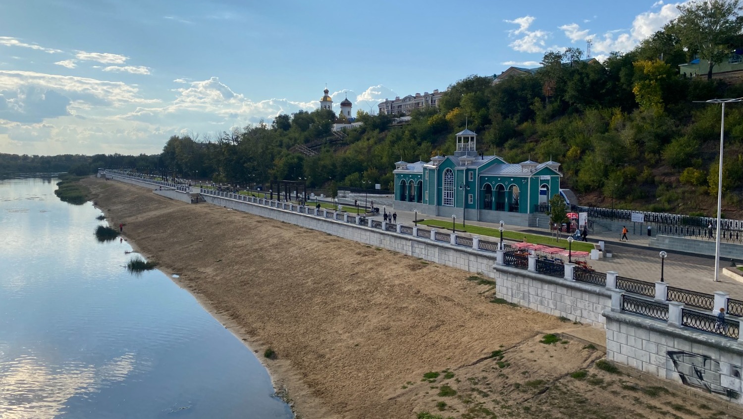 Не так давно в городе прошла масштабная реконструкция набережной. Теперь там оборудованы песчаные пляжи, прогулочные зоны, детские и игровые площадки, есть кафе и рестораны. По пешеходному мосту «Европа-Азия» или по канатной дороге можно перебраться на другой берег реки Урал, по которой проходит условная граница между Европой и Азией.