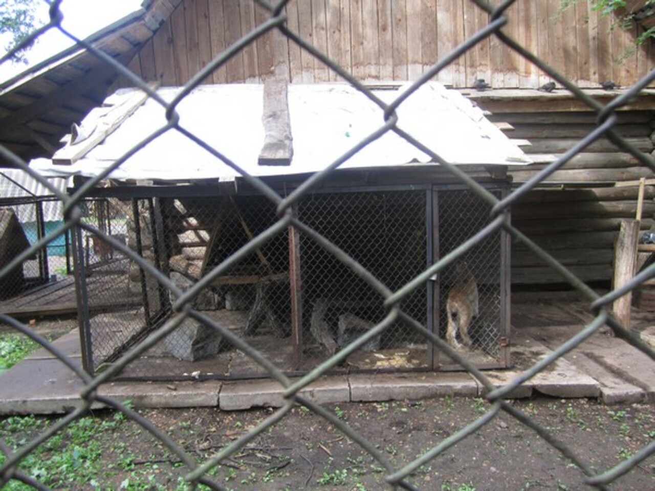 Первой в глаза мне бросилась рысь – она бегала туда-сюда по крохотной клетке, страдальчески раскрывая пасть. Ее вид вызывал только сочувствие, но никак не интерес или восхищение, какое возникает при виде царственной кошки. Причем заснять животное никак не удавалось – так оно металось по своей узкой клетке. Затем рысь забилась в глубину вольера и окончательно скрылась от объектива.
