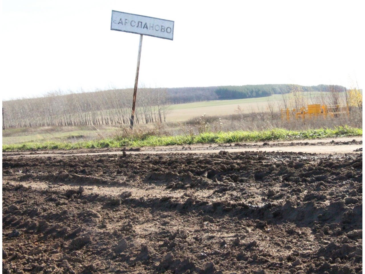 Ровно год назад, в октябре 2011 года творческая группа «ОЭГ» по тревожному сигналу местных жителей в дождь, по грязи пробиралась от трассы Уфа - Стерлитамак к селу Арсланово Кармаскалинского района. Село в шести километрах от трассы, в 30 минутах езды от Уфы. Ехали на «девятке». Не утонули, хотя временами были опасения, что это произойдет. Доехали. Поговорили с местными жителями, выяснили, что осенью, зимой и весной, когда грязь или снег, село бывает практически полностью отрезанным от внешнего мира. Потом обратились в администрацию района, управляющий делами Фаргат Кутлубаев согласился, что ситуация сложная, и убедил нас, дословно, что «к Арсланово обязательно будем поднимать дорогу, отсыпать гравием. Если в октябре-ноябре (2011 года (!) – прим. авт.) погода будет, то сделаем». Председатель Старомусинского сельсовета, к которому относится село Арсланово, Фанис Галиахметов подтвердил, что «в течение октября ремонт произведут». Чуть позже Фаргат Кутлубаев уверял по телефону, что работы уже ведутся, техника работает, дорога отсыпается.