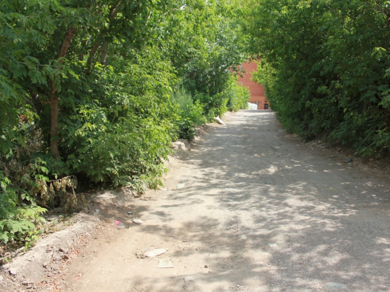 Но вот асфальтированная дорога и вовсе закончилась. Видимо, это улица Егора Сазонова. Так и есть, мои предположения подтвердил припаркованный у обочины автомобиль наряда вневедомственной охраны. Сотрудники полиции охотно рассказали, что это сравнительно небольшой участок проездной дороги, около одного километра длиной. Но совершенно разбитый. Тротуаров, естественно, никогда не было. Хотя дорога и автомобильная, и пешеходная. К тому же крайне узкая. Две машины точно не разминутся, приходится пропускать встречный транспорт в «кармашке» в начале участка.