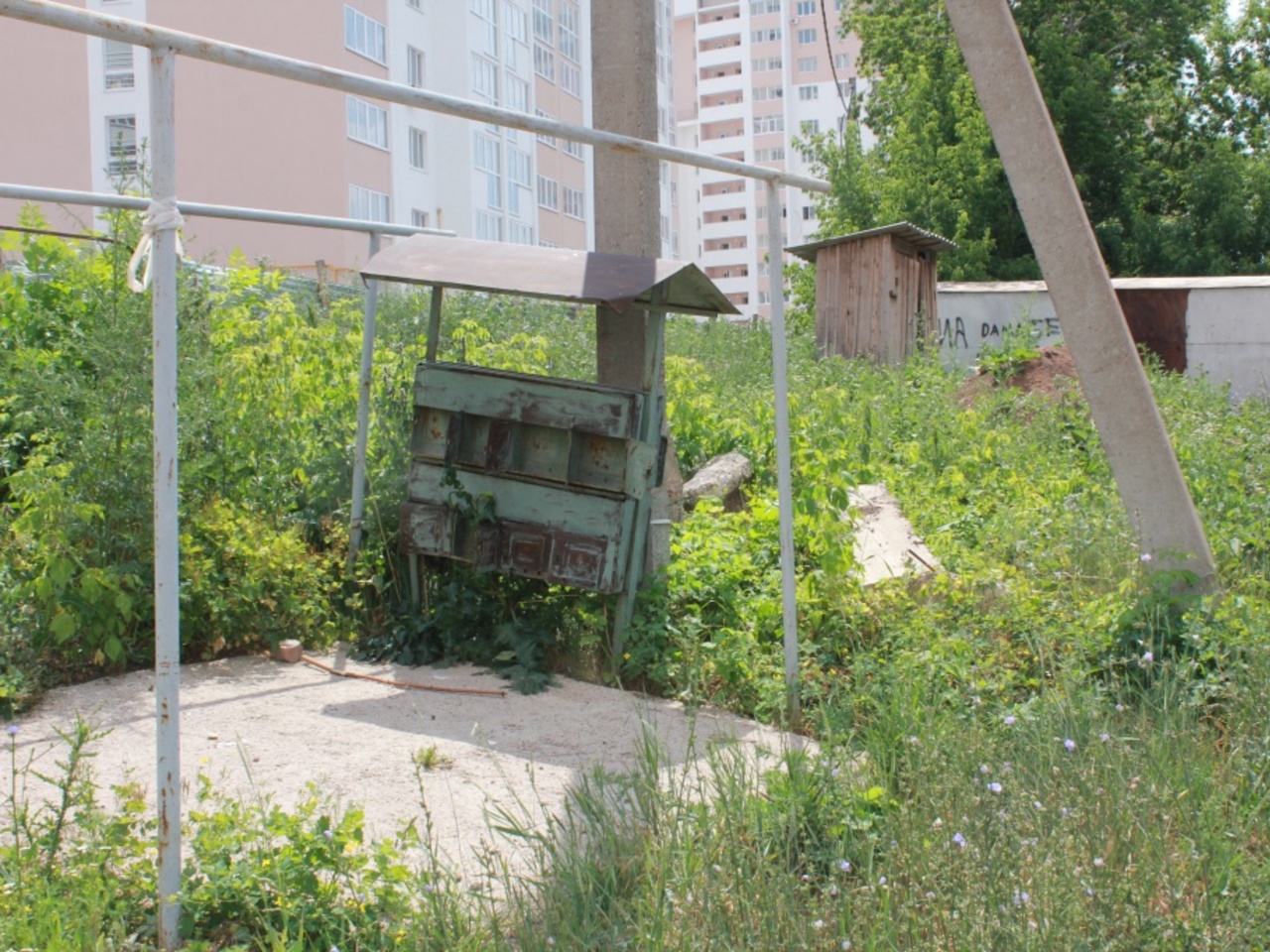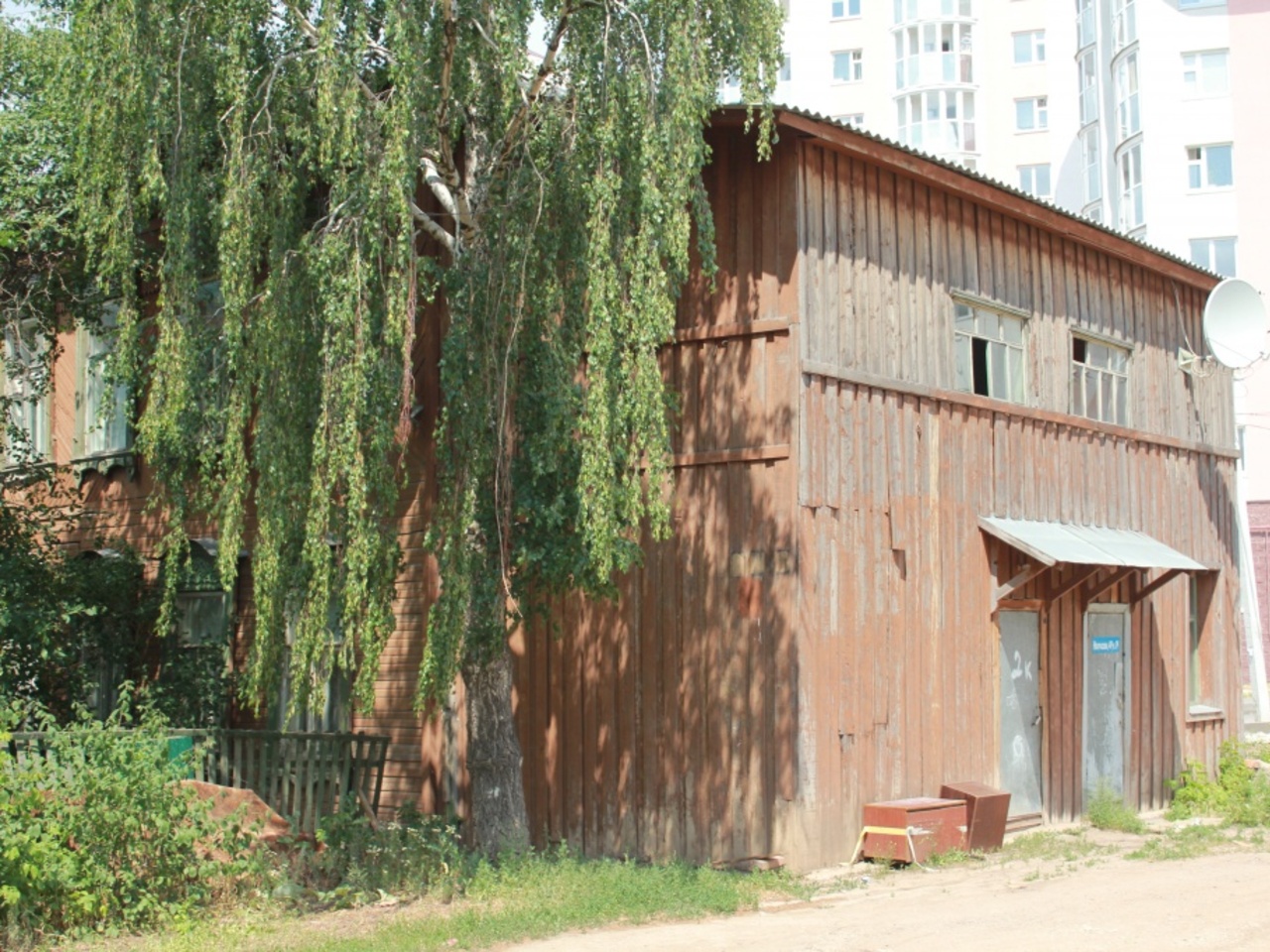 Дом по адресу Некрасова, 4 А, по его словам, уже несколько раз сносили. Однако строение без условий до сих пор заселяют жильцы. Как видите, все блага цивилизации во дворе. Здесь и почта, и туалет, и помойка.