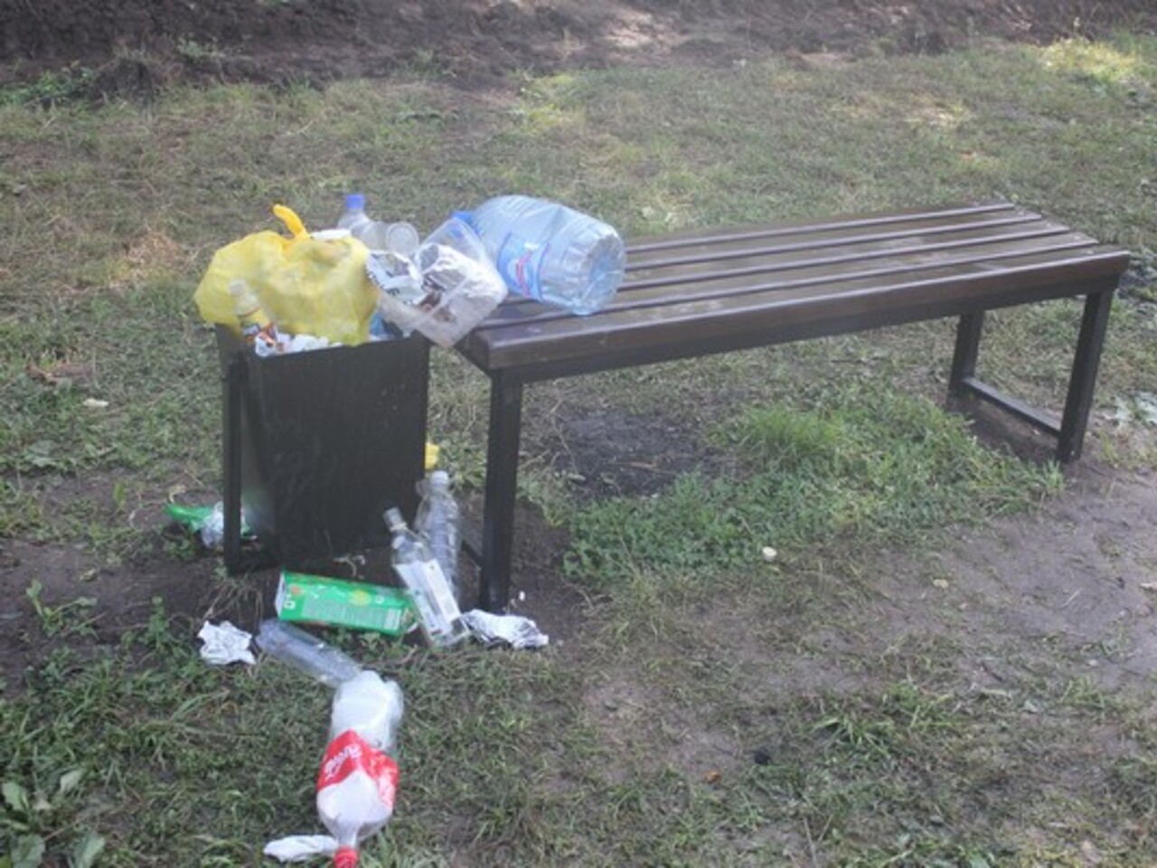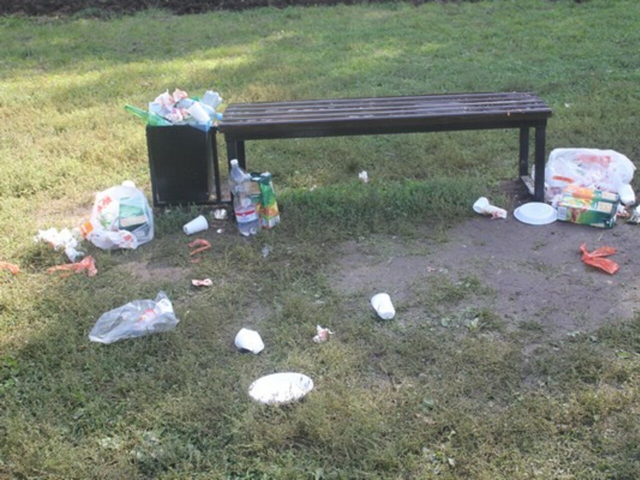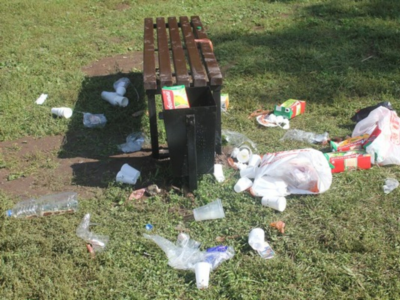 Чувствуется, что люди хорошо поели и не менее хорошо выпили. Остатки их пиршества лежали в урнах, рядом с урнами, возле скамеек и просто произвольными живописными кучками.