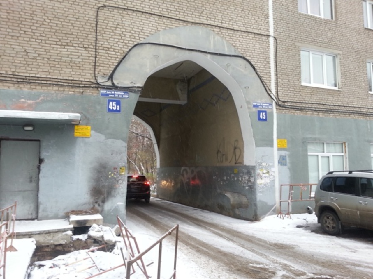 Ко всему прочему, во время новой стройки строители захватили часть придомовой территории. Строительный забор полностью блокировал подъезд к дому №45а, перекрыты подъездные пути для пожарных и медицинских служб, затруднен вывоз мусора (подъехать к дому № 45а можно только через узкую арку).