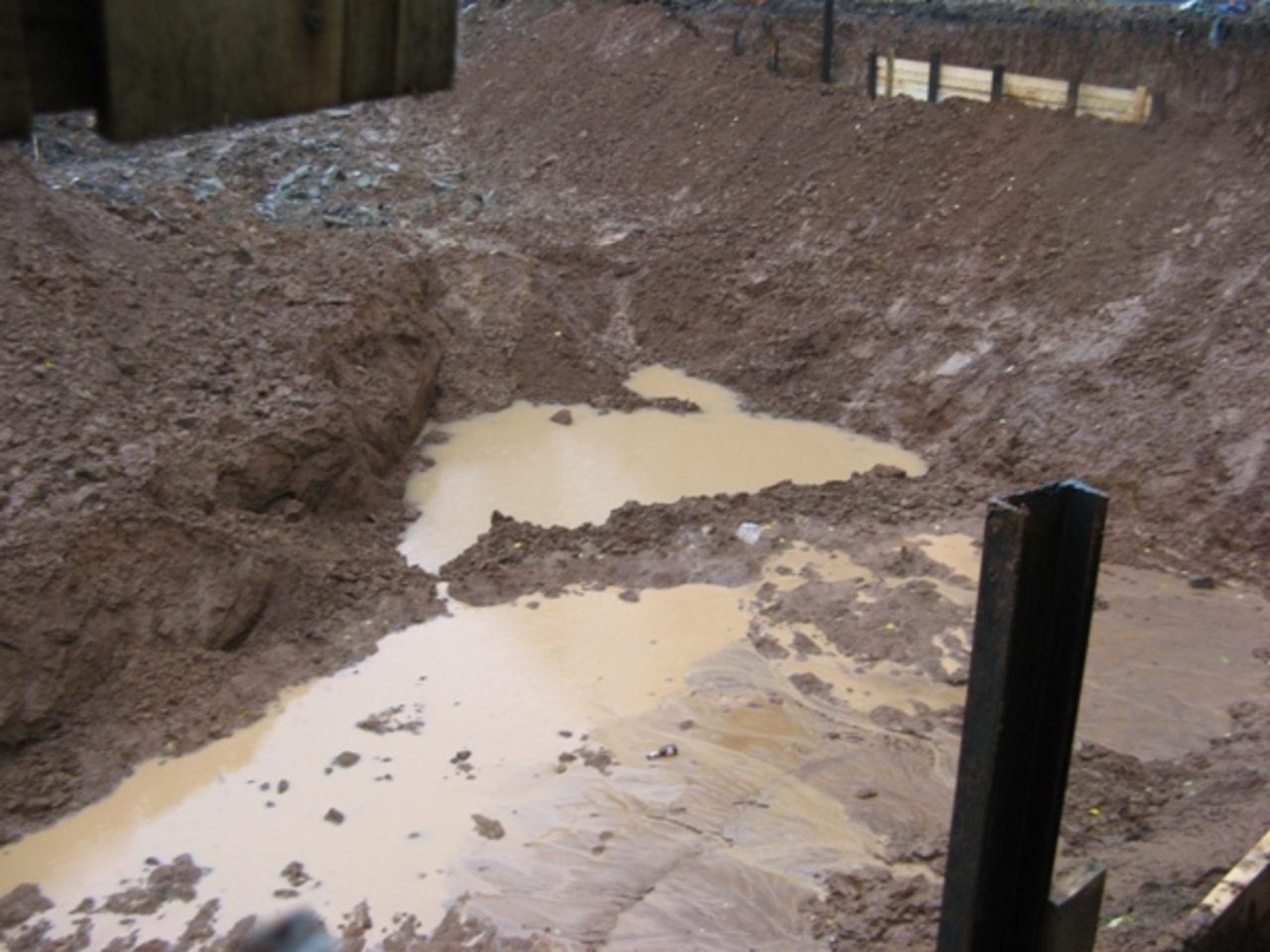 12 октября в центре котлована образовалось огромное озеро из вышедших на поверхность грунтовых и родниковых вод. Днем строители попытались присыпать котлован, скрыв данный факт от жителей близлежащих домов № 47 и 45а. В связи с чем жители домов боятся спать ночью и вообще находиться в своих собственных квартирах!»
