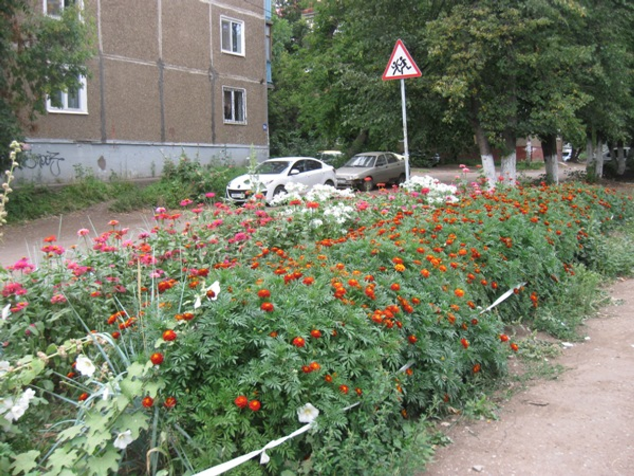 На самой территории 58-й школы довольно чисто и ухоженно. Есть несколько клумб с цветами, вдоль стадиона тянутся цветущие газоны.