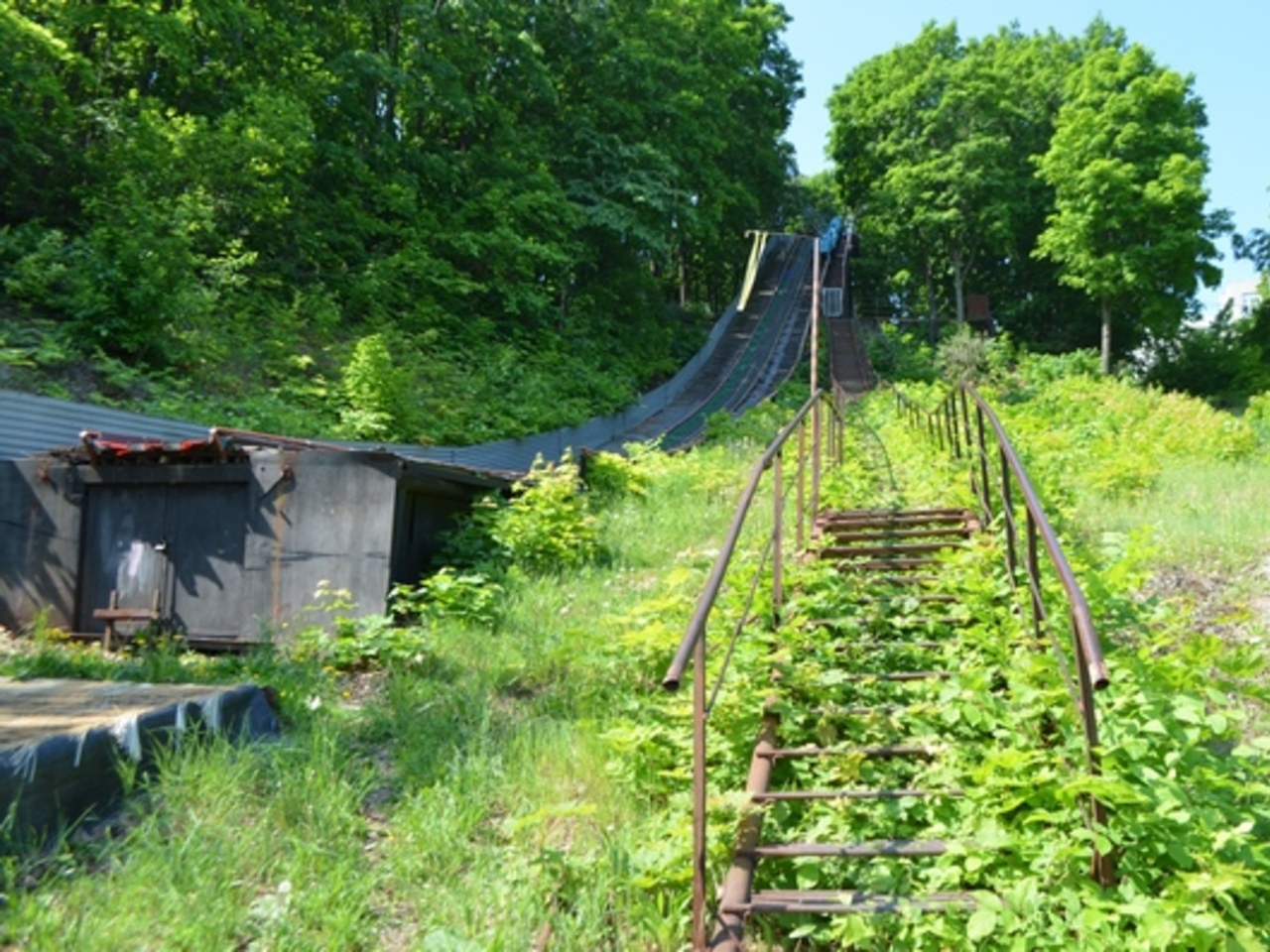 Мы решили не спускаться на «канатке», а воспользоваться железной лестницей, находящейся около спорткомплекса «Трамплин».