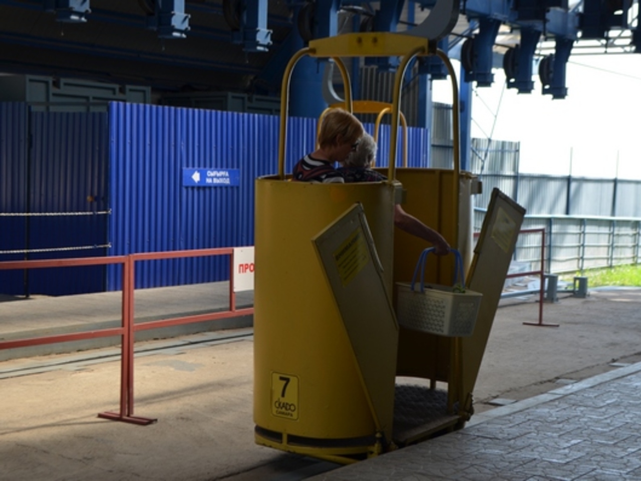 Здесь же появился большой стенд с правилами поведения пассажиров на канатной дороге, а также предупреждение, что велосипеды провозить запрещено. Очереди не было, некоторые кабинки уходили вниз пустыми. Одна шустрая бабулечка лет 70, увидев у меня в руках фотоаппарат, поинтересовалась, не журналист ли я. Стоило мне утвердительно ответить, как она тут же начала свой рассказ, невзирая на назойливых комаров.