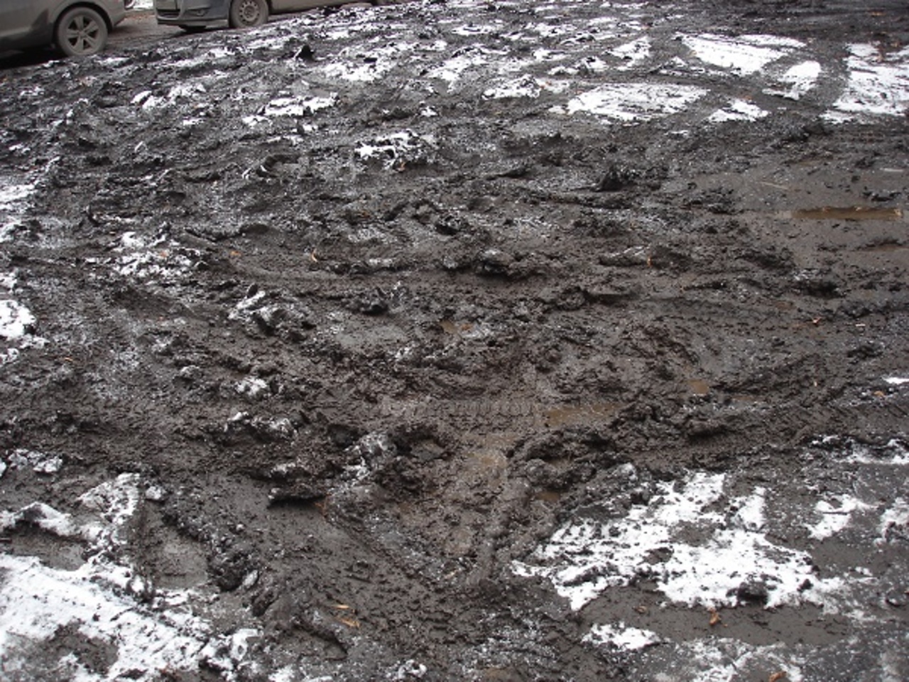 Тротуар рядом — полностью черный, покрытый слоем влажной грязи. Минуя этот участок тротуара, обнаруживаешь, что вся обувь безнадежно испачкана. Вполне понятны чувства людей, которые ходят по этому тротуару каждый день!