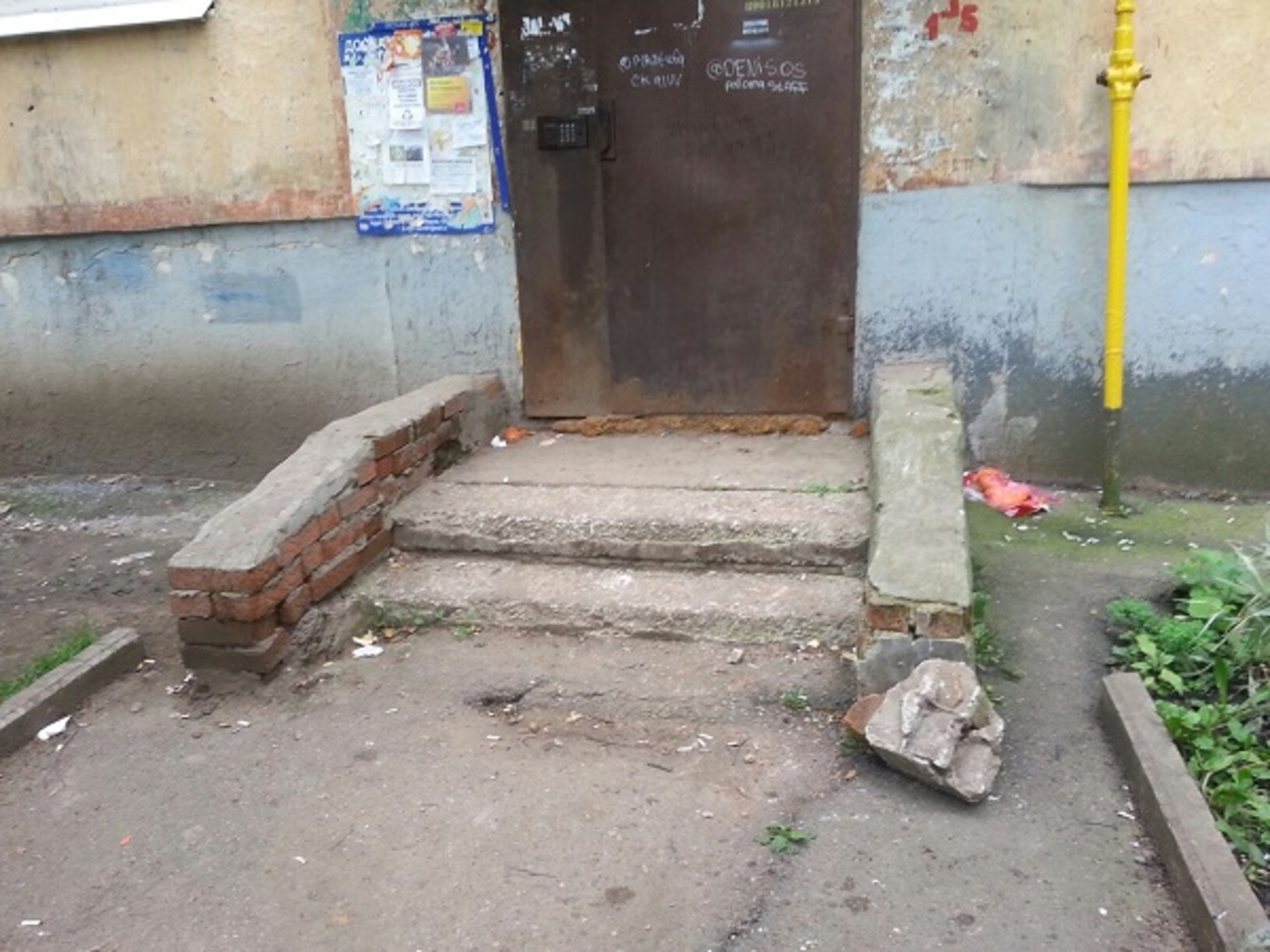 Итак, разбитые, откровенно старые входные группы c отколотыми частями.