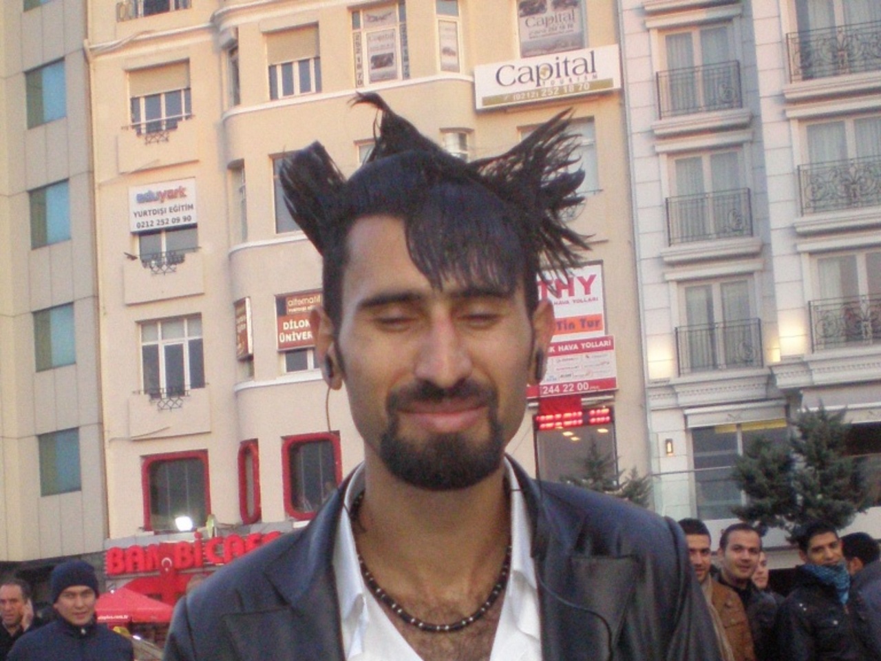 Символом Истикляль стала свобода. Стоит ступить на ее мостовую, как пропитываешься духом независимости от всяческих условностей. Нередки здесь митинги, шествия, демонстрации, выступления футбольных и прочих фанатов, маркетинговые акции и флэшмобы. И отдельные личности, как могут, демонстрируют свою независимость. Я, например, посреди улицы заметила необычного молодого человека с торчащими в разные стороны волосами.