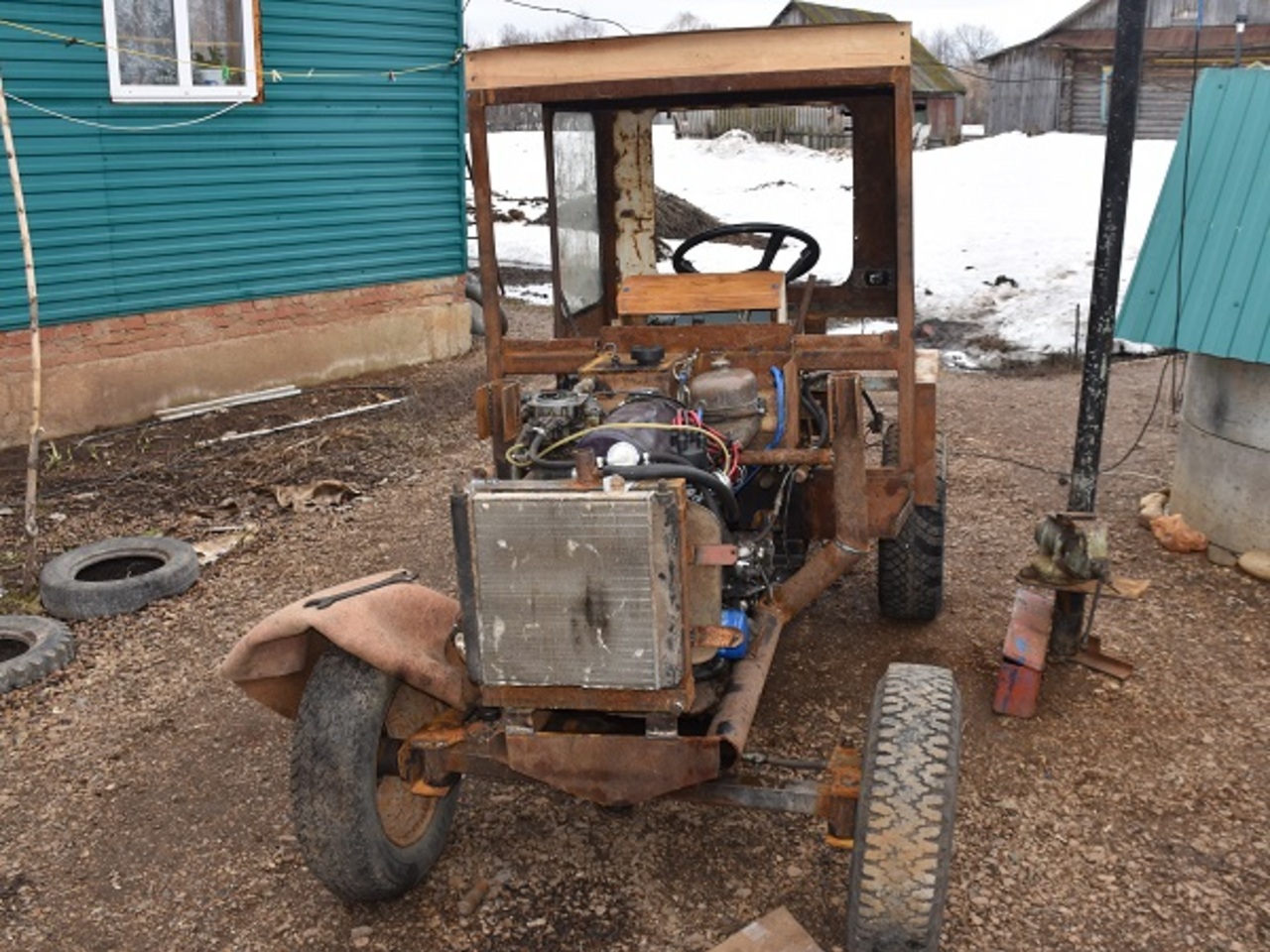 Разработка полностью своя, есть детали от «Уазика». Задний привод будет с блокировкой. Плуг к нему приделаю, буду огород пахать. Участок у меня большой, 30 соток. Земля подсохнет, испробую свое новое изобретение.