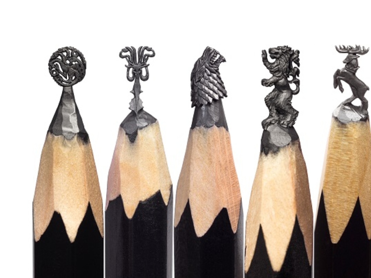 В Сингапуре уфимский Левша представил 16 эксклюзивных скульптур: Stark Sigil, Iron Throne, Three-eyed Raven, Longclaw, Titan of Braavos, Cersei's New Crown, White Walker, Weirwood Tree, GreyJoy Sigil, King Pin, Lannister Sigil, Drogon, Night King, Baratheon Sigil, Oathkeeper, Targaryen Sigil. Художник планирует дополнить коллекцию микроскульптур по мотивам «Игры престолов» — сделать оставшиеся гербы домов: Martell, Tyrell, Arryn, Mormont, Clegane, Tully и других, а также вырезать на грифеле бюсты главных героев сериала.