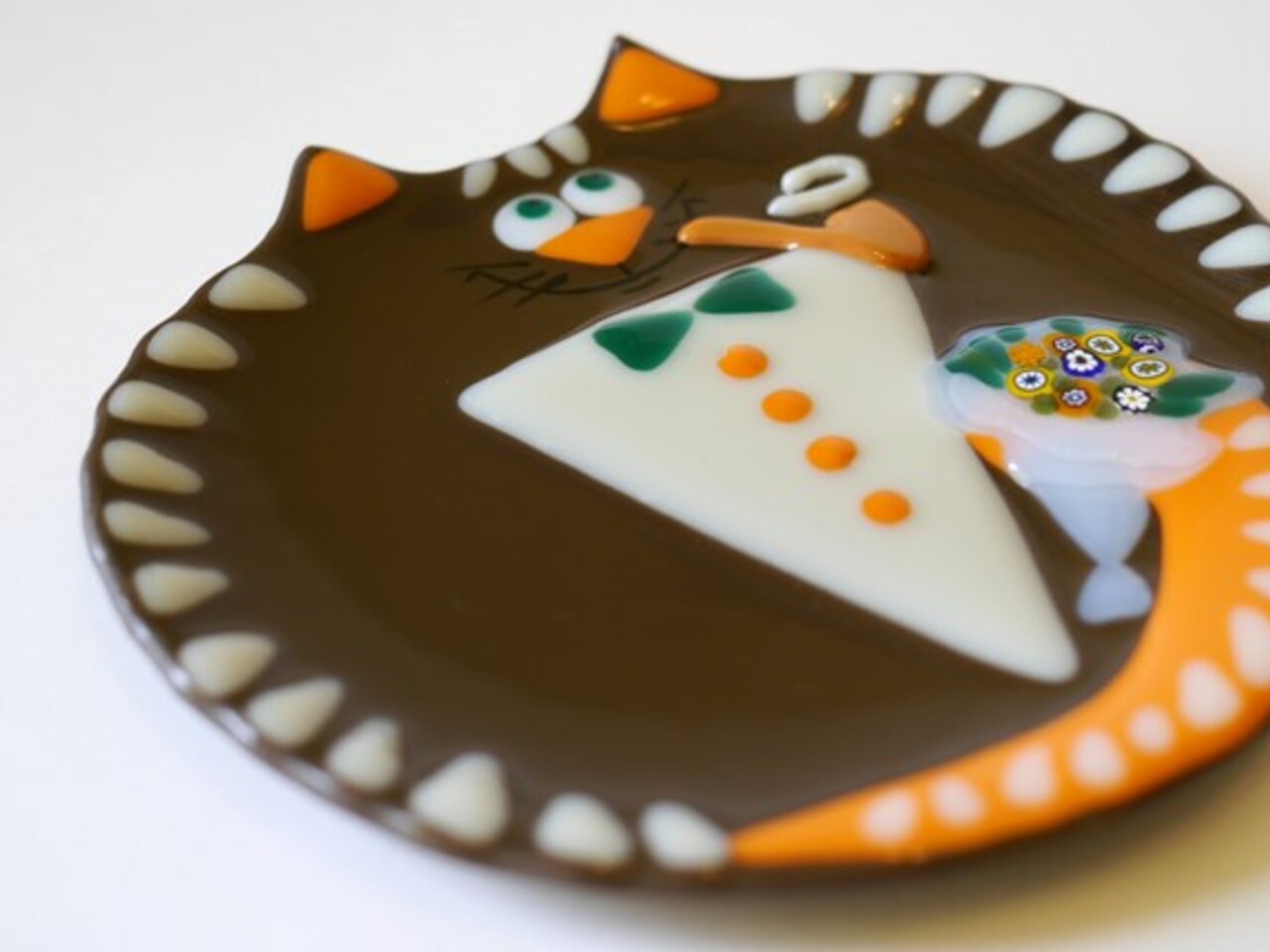 — Делаю детали интерьера — панно, часы, декор для зеркал. Кроме этого, занимаюсь посудой. Но поскольку размеры печи не позволяют делать высокие изделия — вазы, кружки, то работаю в плоскостной технике, мастерю тарелочки — декоративные и используемые для еды. Изготавливаю бижутерию — подвески, серьги, броши — она получается очень разноплановой, яркой и необычной.