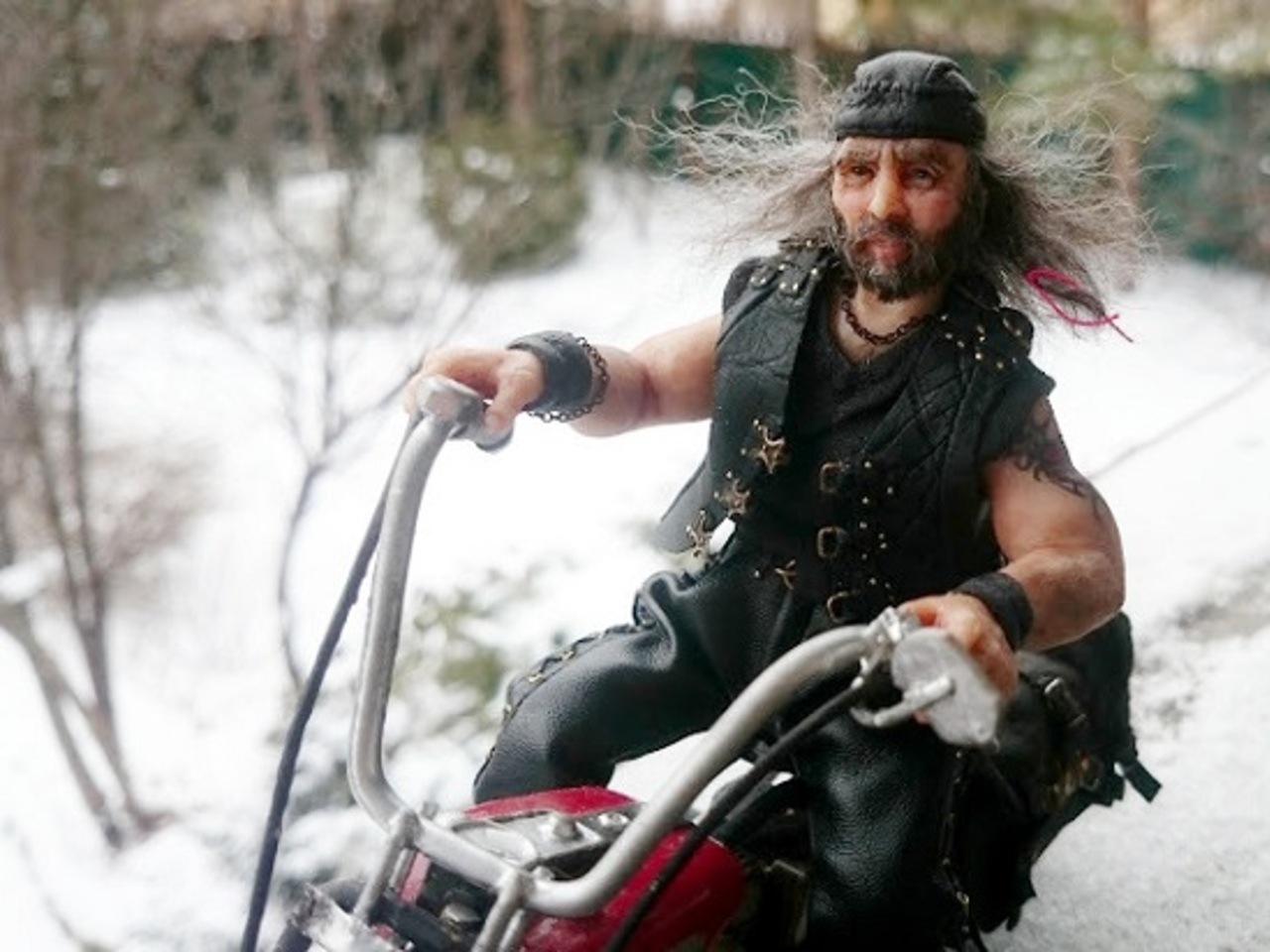 А есть просто яркие персонажи, так, в прошлом году я изготовила колоритного байкера с татуировками.