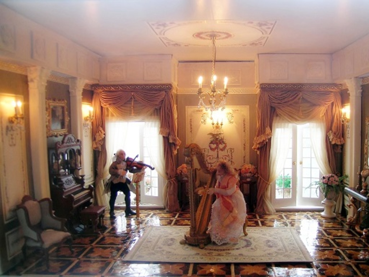 Некоторые предметы интерьера, такие как стеклянная и металлическая посуда, я покупаю. То, что не удалось купить, изготавливаю сама. Очень трудоемким, например, является изготовление лакированного паркета — представьте, узор нужно выложить крохотными «плашками» из шпона, а потом отшлифовать, покрыть лаком в несколько слоев, высушить, отполировать…