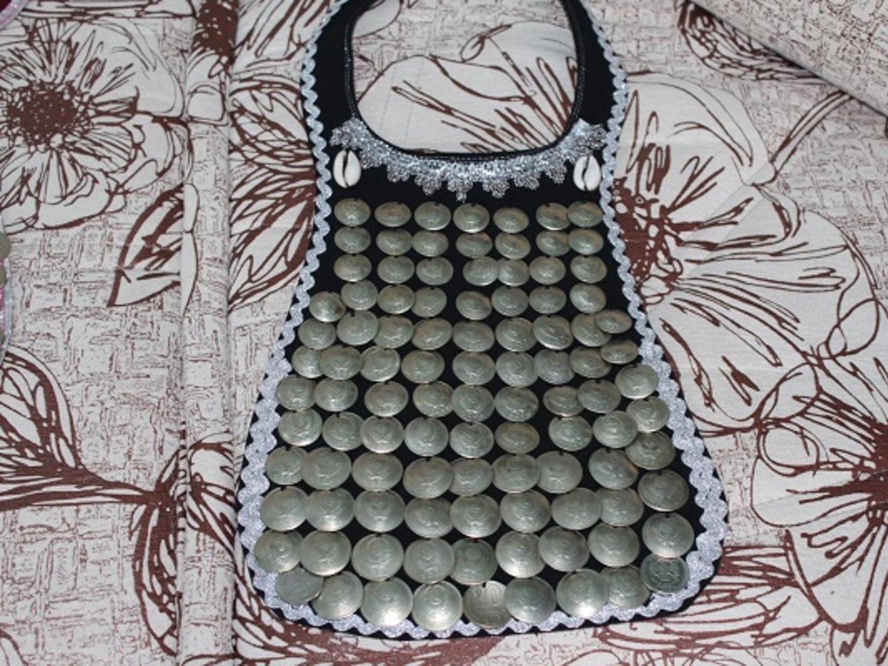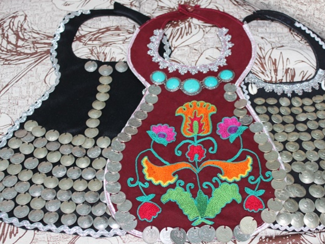 — Поначалу изучала книги, рассматривала музейные экспонаты — нагрудники, характерные для северо-восточных районов, затем уже на их основе свои начали придумывать. Раньше носили нагрудники, украшенные серебряными монетами, ракушками (ҡортбаш). Считалось, что они являются как бы оберегом от сглаза, защищают от злых духов. И они были тяжелые. Если не было денег, монетами из нагрудника платили налог, на их место пришивали пуговицы или ракушки. Я изготавливаю как тяжёлые нагрудники из современных монет, так и для повседневной носки полегче — украшенные тамбурной вышивкой, что также свойственно северо-восточным башкиркам, — рассказала Танзиля Мустафаевна.
