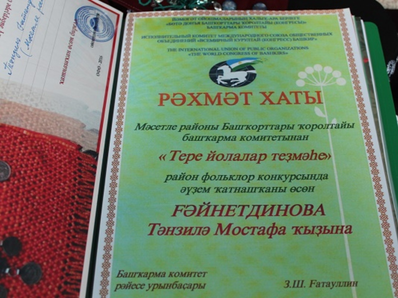 Известная на весь северо-восток Башкортостана мастерица по пошиву национальных костюмов, головных уборов и изготовлению украшений, общественный деятель и активистка народного фольклорного кружка «Ак йондоз» Танзиля Мустафаевна Гайнетдинова из Мечетлинского района взялась за восстановление головного убора для девочек — хараус (һарауыс).