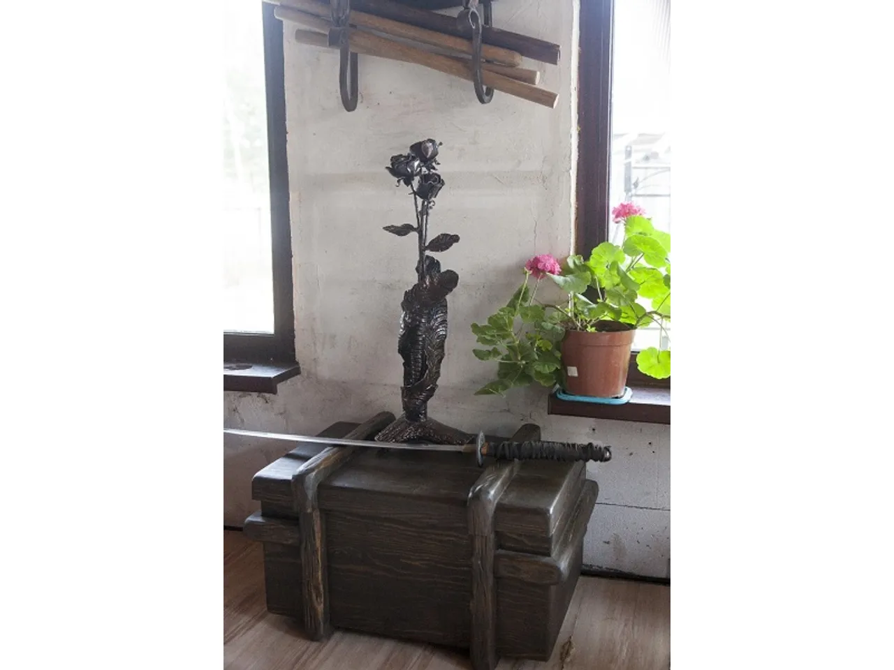 — Помимо оружия и рыцарей вы же делаете и другие вещи — решетки, заборы и даже художественные изделия, например, цветы из металла.