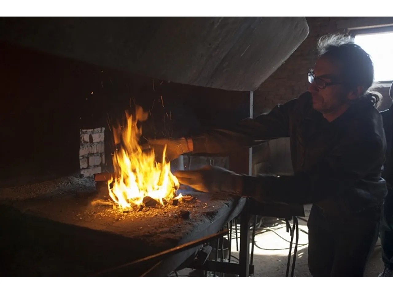 Есть кузнечный горн, мы его сами варили — из того, что было под руками. Какое железо было, из того и состряпали. Соорудили автоматический поддув от вентилятора, нагнетающий воздух к горящему углю.