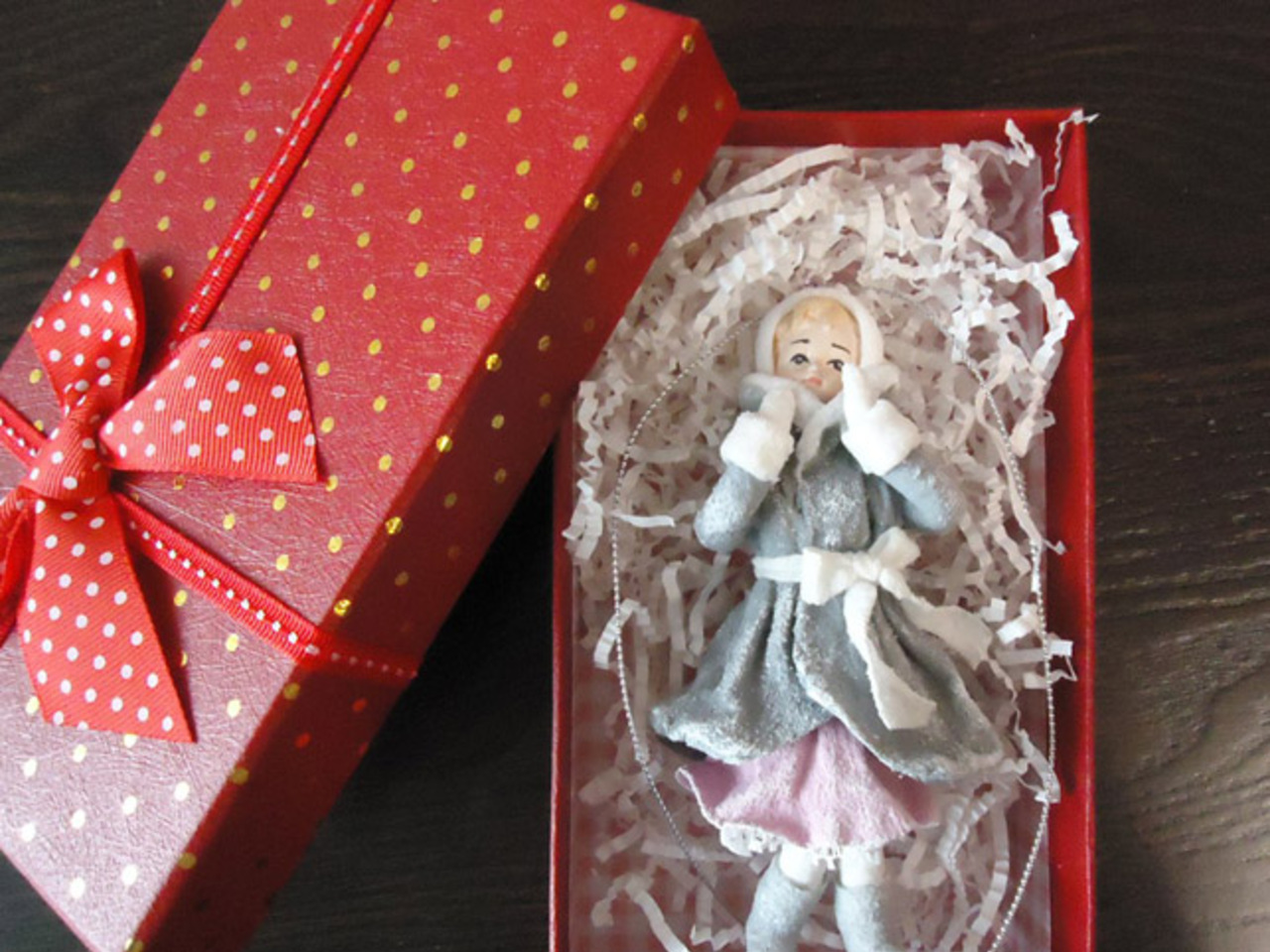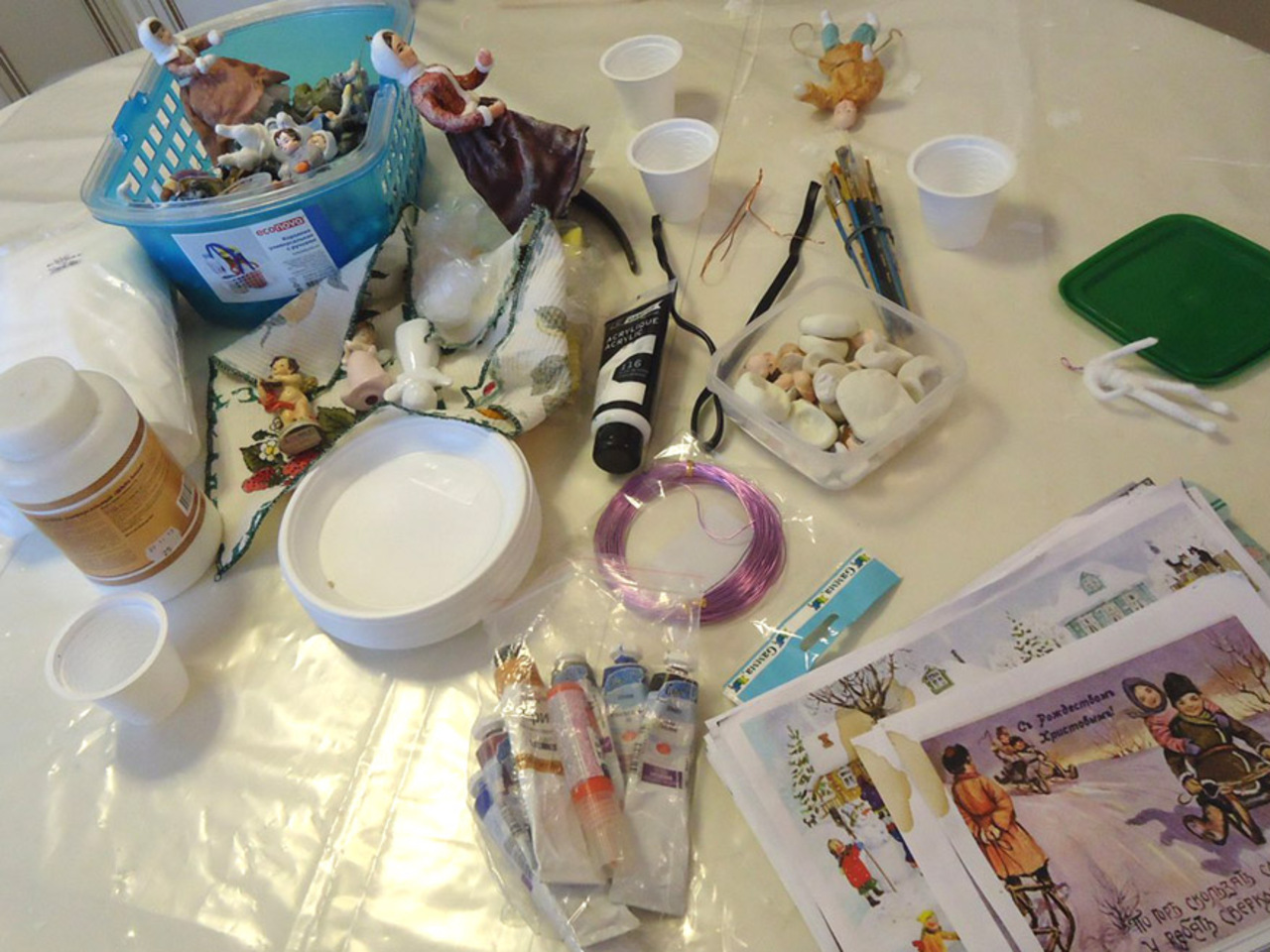 «На первом этапе работы для будущей игрушки делается проволочный каркас, причем сверху проволока изгибается петлей для крепления нити подвески на елку, — поясняет Ирина. — Затем из ваты, которая наносится несколькими слоями и скрепляется клеем ПВА, формируется собственно фигура и разные детали одежды. Наиболее заметная и выразительная часть — лицо выполняется из специального материала — керамопластики.