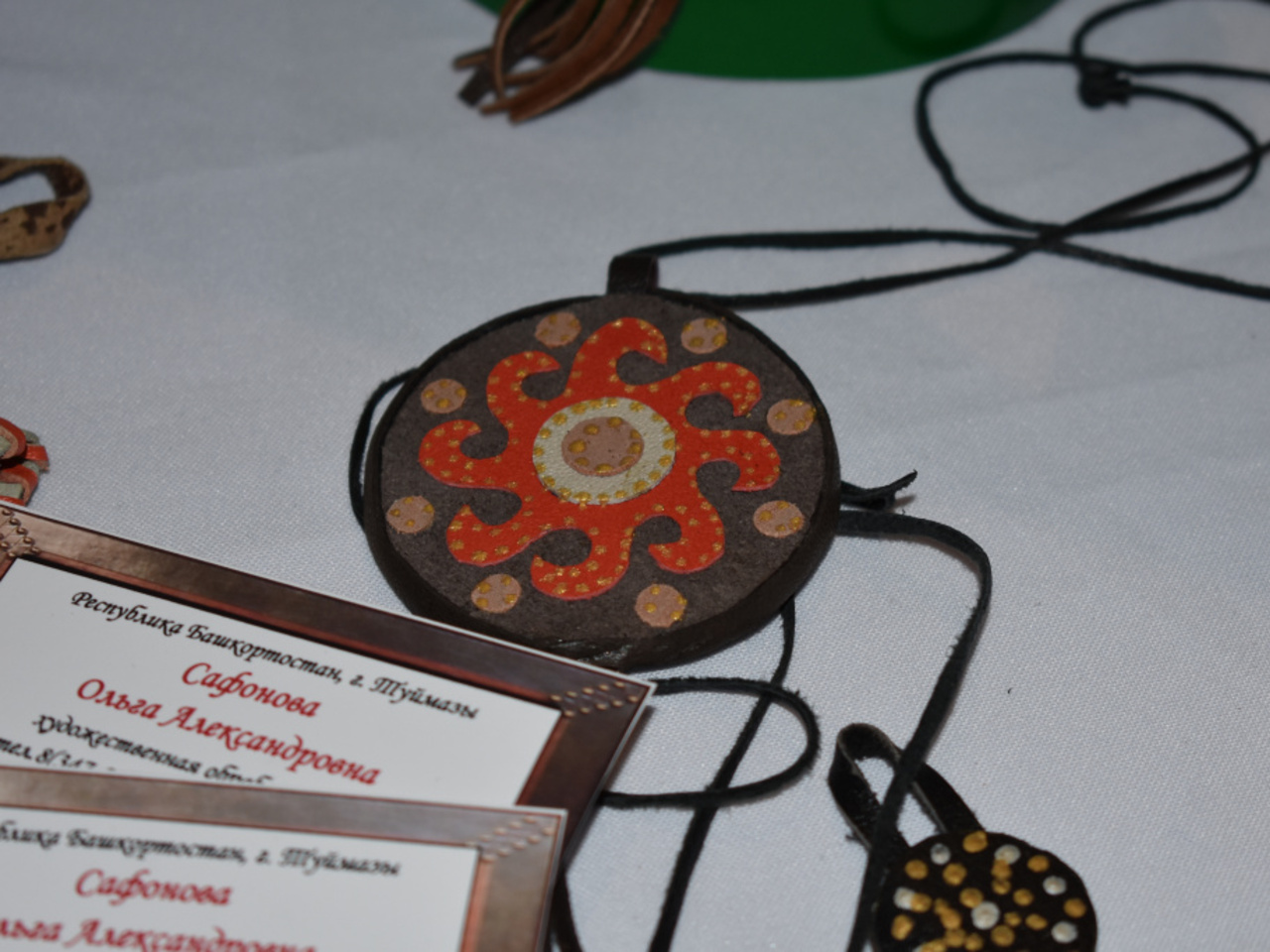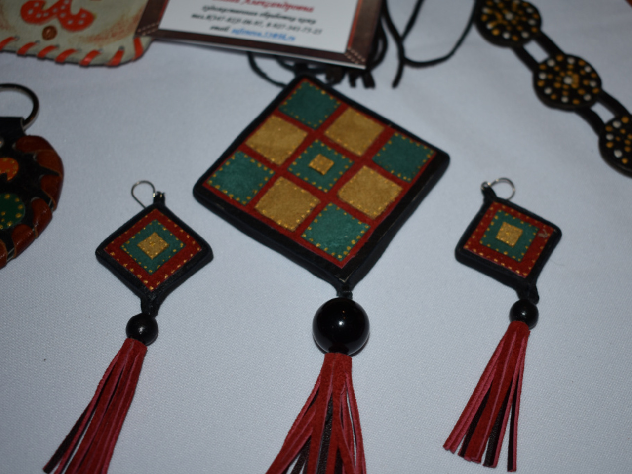 Ольга отметила, что наибольшим спросом пользуются украшения из кожи и сувениры. Она делает их в этно-стиле. Они хорошо подходят в качестве сувениров для иностранцев.