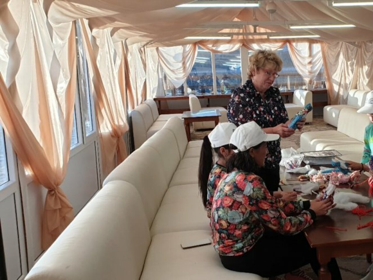 Домохозяйки и пенсионерки потихонечку увлеклись шитьем игрушек и плетением макраме. Причем, некоторые говорили, что никогда прикладным творчеством не занимались и вообще только кроссворды умеют разгадывать. Тем не менее один-два раза сделали, всё получилось, им понравилось, и они уже не первый год занимаются. Сейчас у нас есть костяк — несколько человек, которые постоянно приходят, очень много уже всего смастерили, у каждого персональную выставку можно делать. Они мастера на все руки — и изделия из джута плетут, и зверюшек шьют, и кукол, шкатулки, подушки, грелки на чайник делают. Дома они ещё и вышивают.