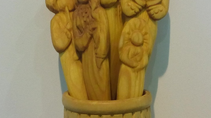 — Наша студия «Берендей» изучает развитие и современное состояние резьбы по дереву, — говорит Владимир Фёдорович. — Смотрим — как раньше вырезали по дереву, как это делают сейчас и что нас ждёт дальше.