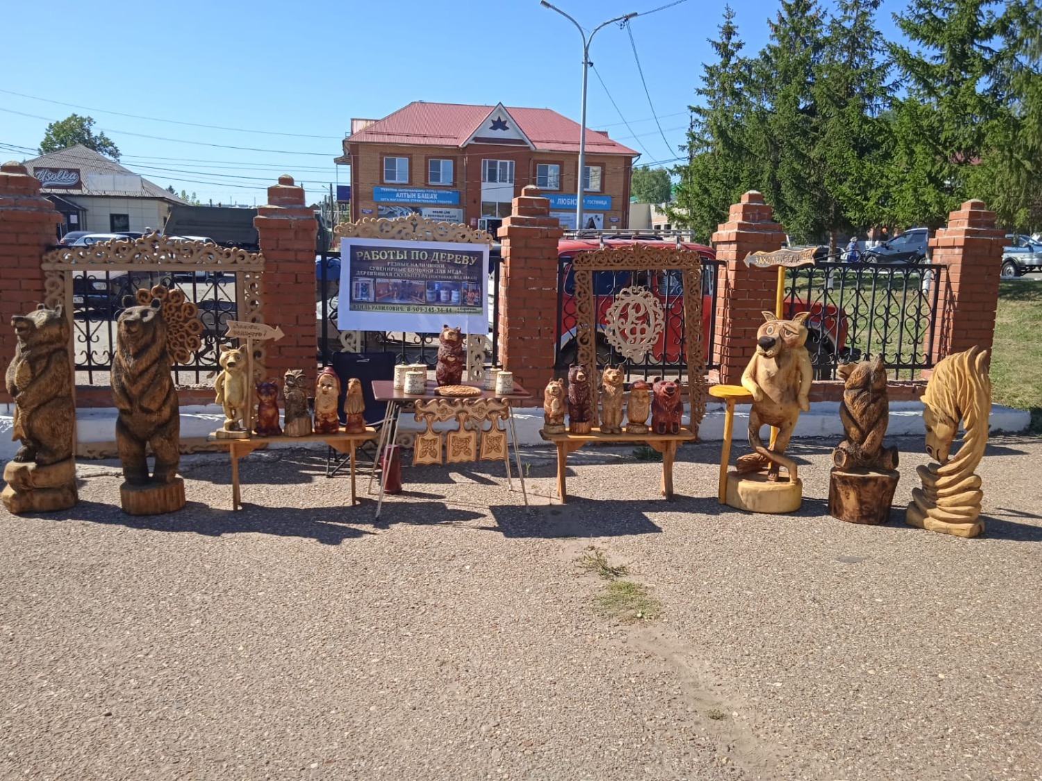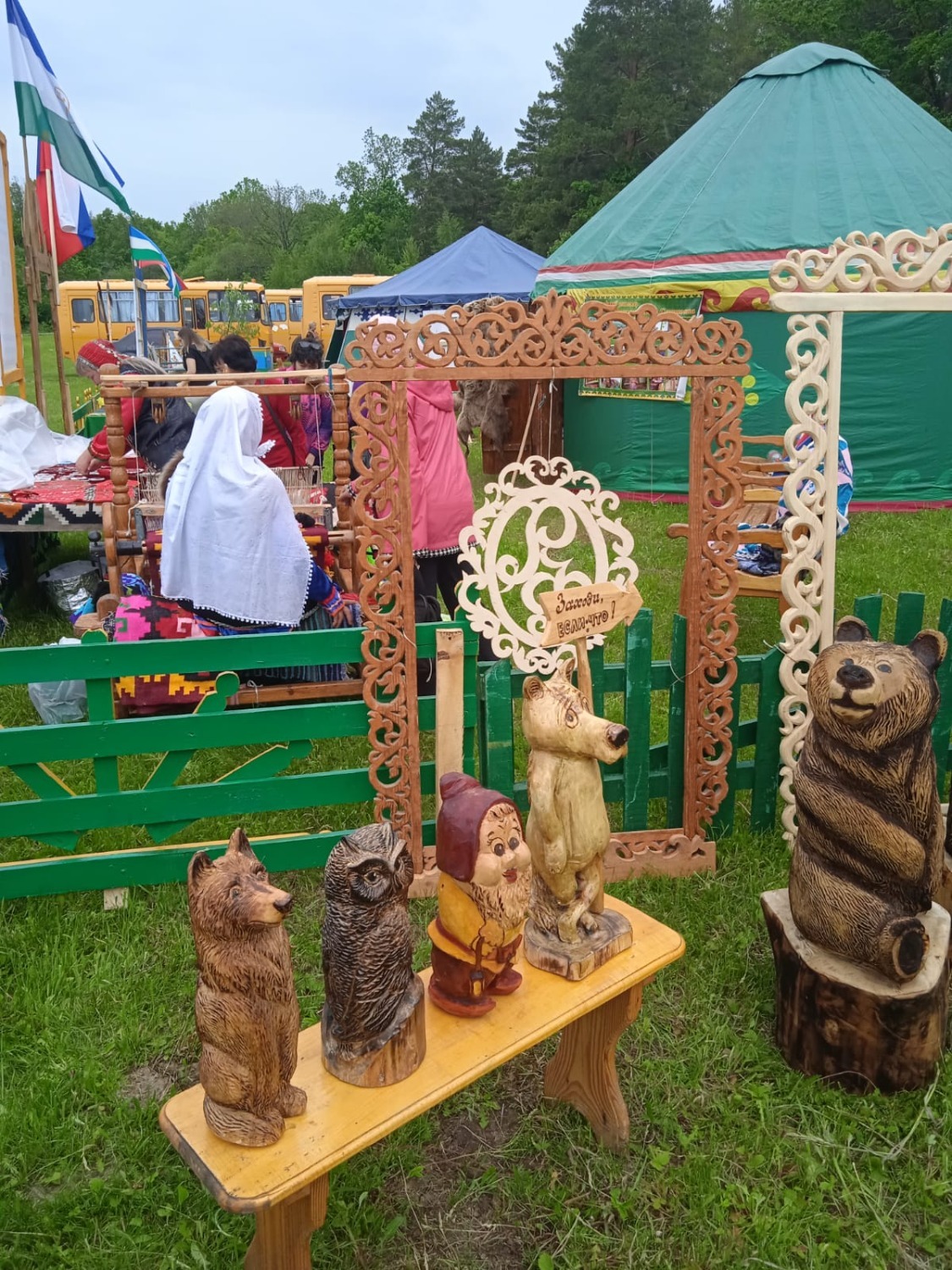 Купил небольшой токарный станок, взялся изготавливать бочонки. У нас район туристически привлекательный, и чтобы еще больше заинтересовать гостей, односельчане предложили сделать деревянные фигуры, которые установят в общественных местах. Из оставшихся заготовок для бочонков, чурбаков сначала сделал медведя с рыбкой, а потом вырезал и другие фигурки. За зиму штук 15 изготовил. Затем стал работать бензопилой, использовать фрезы, болгарку. Дело пошло. Весной из осокоря (разновидность тополя, дерево с мягкой древесиной и с серой, чернеющей корой) стал бензопилой выпиливать фигурки. Большой спрос возник на волков. В Красноусольском штук пять заказали. Мишек стали ставить в летних детских лагерях, парках. Мои изделия увезли в Стерлитамак, Салават, Нижнекамск и другие города и села.
