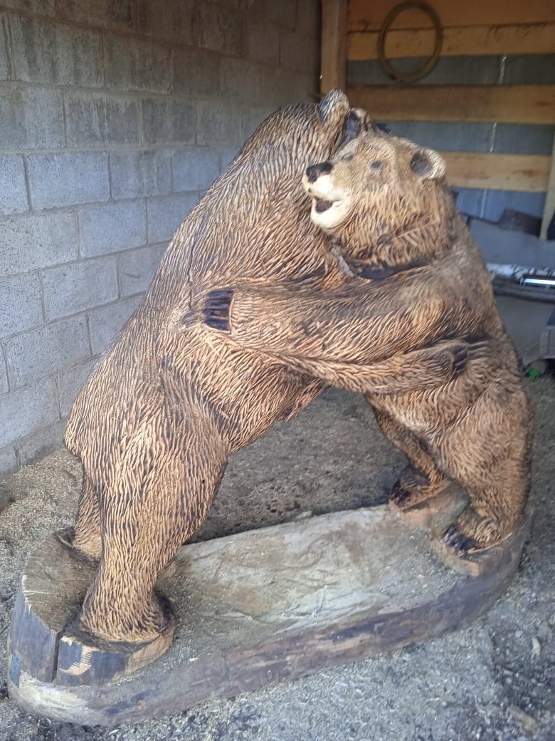 Также хорошо покупают медведей, заказывают собачек. У мужчины умерла собака, и он попросил смастерить фигуру из дерева. Я изготовил по фотографии. Почти копия получилась. Мужчина так обрадовался, обнял деревянную собаку.