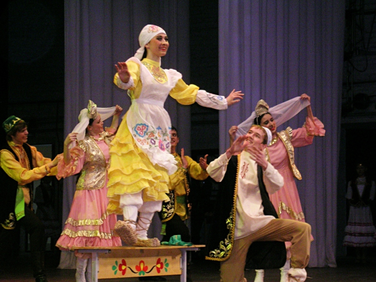 Здесь каждая постановка – товар эксклюзивный. Девочки и мальчики. Пары. Иначе весьма трудно было бы исполнить «Баварскую польку», «Синий платочек», танго «Встреча», «Казачий танец», «Флотскую пляску». Но были и девичьи «Бурзяночки». Интересное решение коллектив нашёл, языком хореографии рассказывая, например, о дружбе народов. Звучала песня «Ой ты, рожь!», хорошо знакомая старшему поколению. Зал застыл. Тонкая мелодия, изящная постановка.