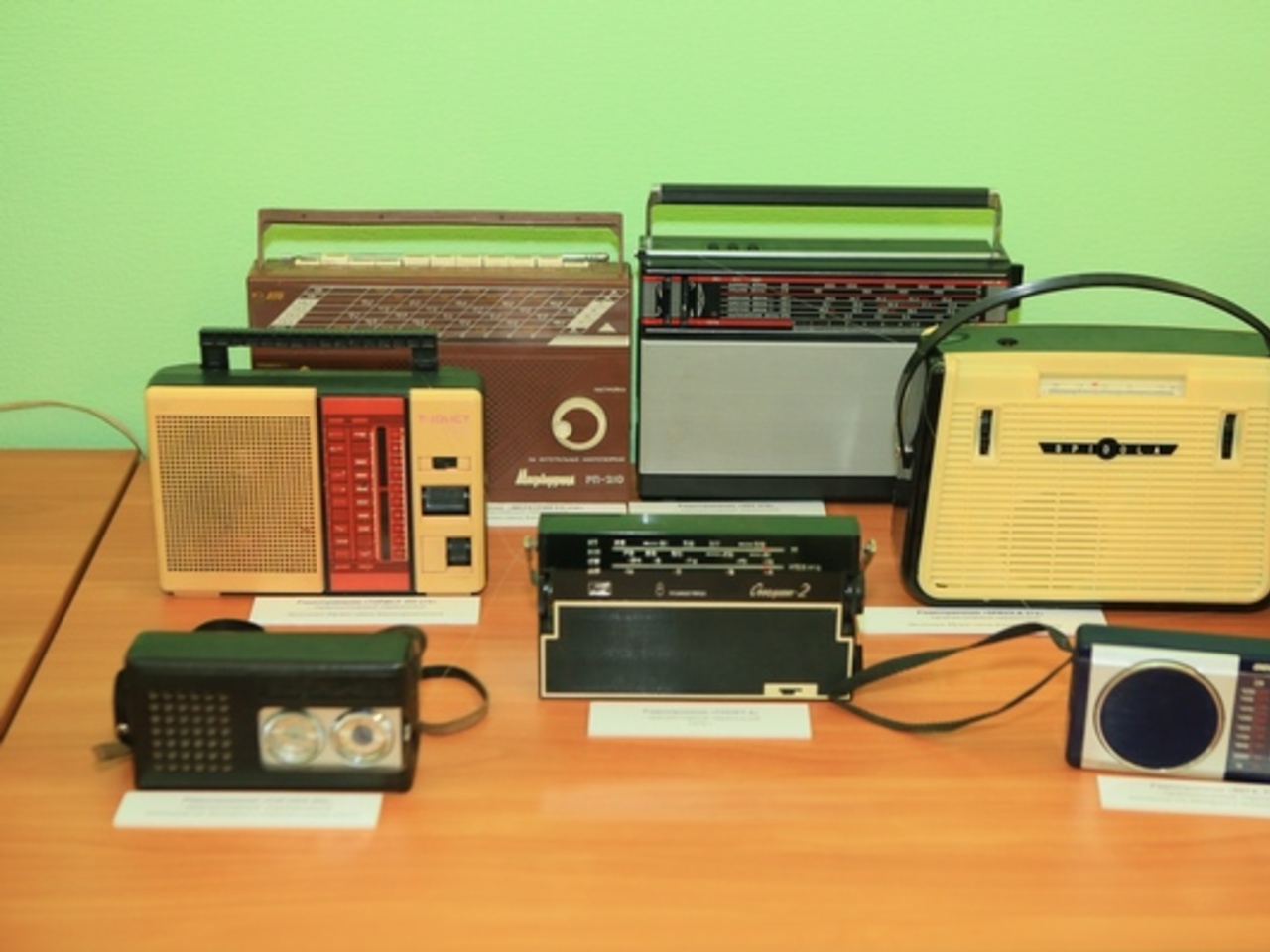 На выставке представлены 36 приёмников разных поколений — ламповые и полупроводниковые, однопрограммные и всеволновые, стационарные и портативные. Среди экспонатов радиолы «Мир» и «Комета», транзисторы «VEF», «Spidola», «Океан» и другие известные советские марки.