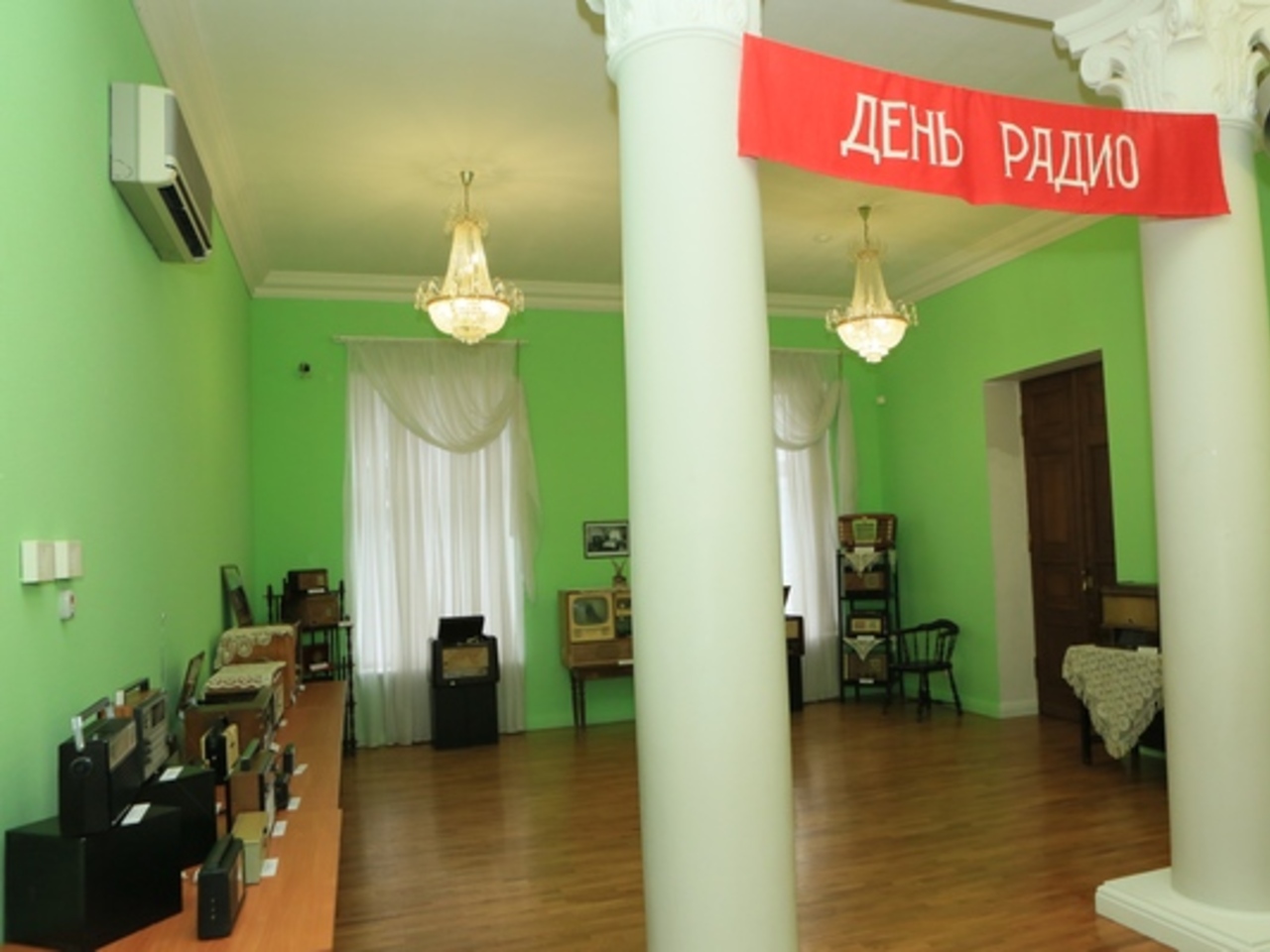 Художник-оформитель музея Анатолий Мелентьев считает, что красный транспарант, натянутый между колоннами, и громкоговоритель, который во время экскурсии передаёт узнаваемые радиопозывные разных лет, создают атмосферу прошлого ХХ века, когда радио являлось мощным средством идеологического и культурного воспитания.