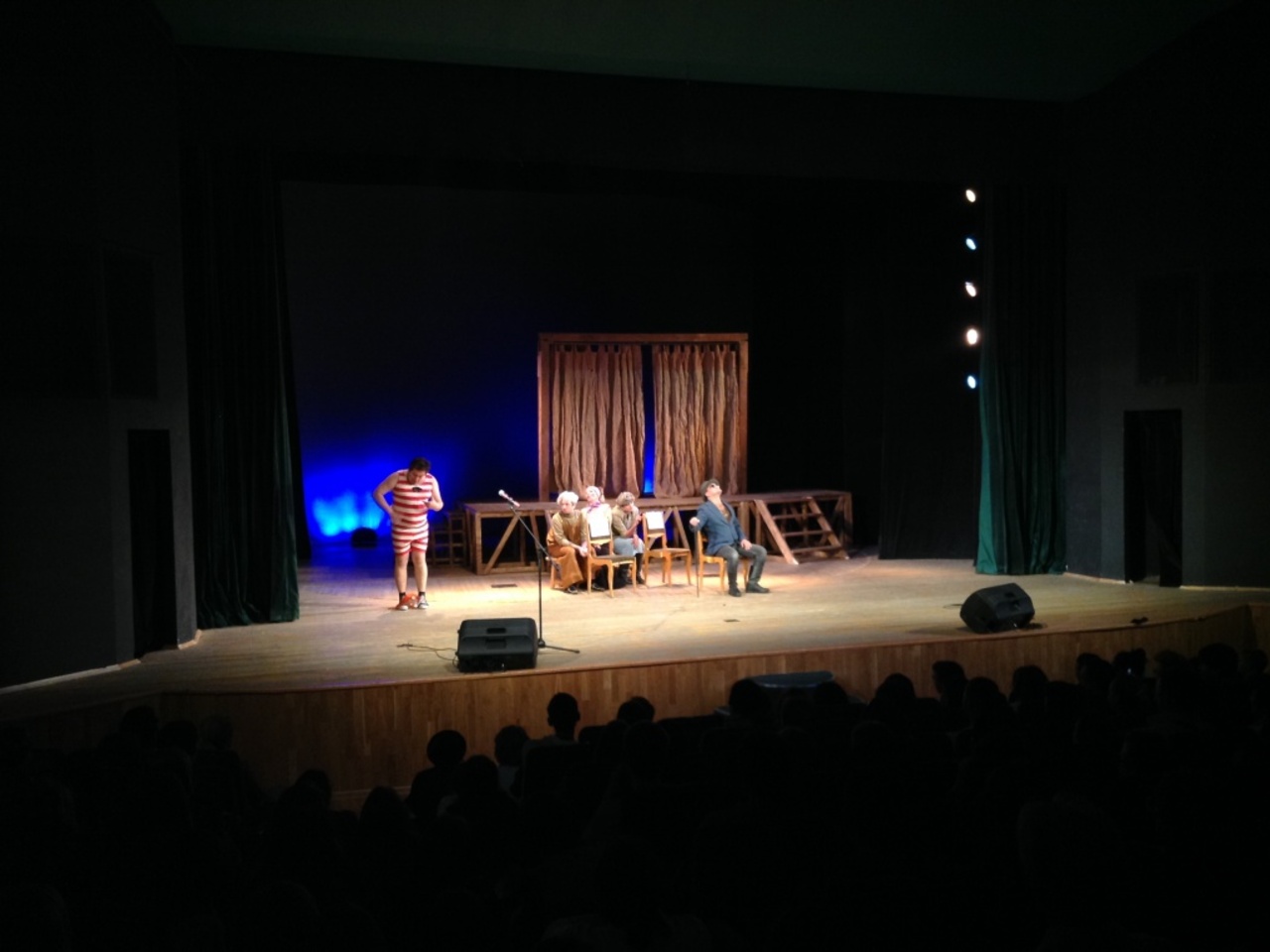 На театральный капустник в зал набилось столько людей, что негде было не то, что сидеть, а даже стоять. Тесно прижавшись друг к другу, дыша в затылок, стоять хотелось не просто так, а ради невероятного зрелища. Отдельные номера (танцы, фрагменты спектаклей) смотрелись неплохо, но в целом, увы, было не смешно. Когда же герои пантомимы (мужчины и женщина) стали изображать пИсающих, я ушла из зала.