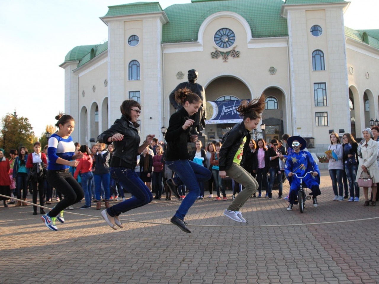 Свой променад по Театральной ночи я начала с главного Башкирского театра – имени Мажита Гафури. К 18 часам на театральной площади уже толкалась целая толпа детей и молодежи. Из дверей театра высыпали сказочные персонажи – кто пешком, кто на самокатах. Они охотно дурачились с ребятней, продавали мороженое, позволяли с собой сфотографироваться и организовывали игры.