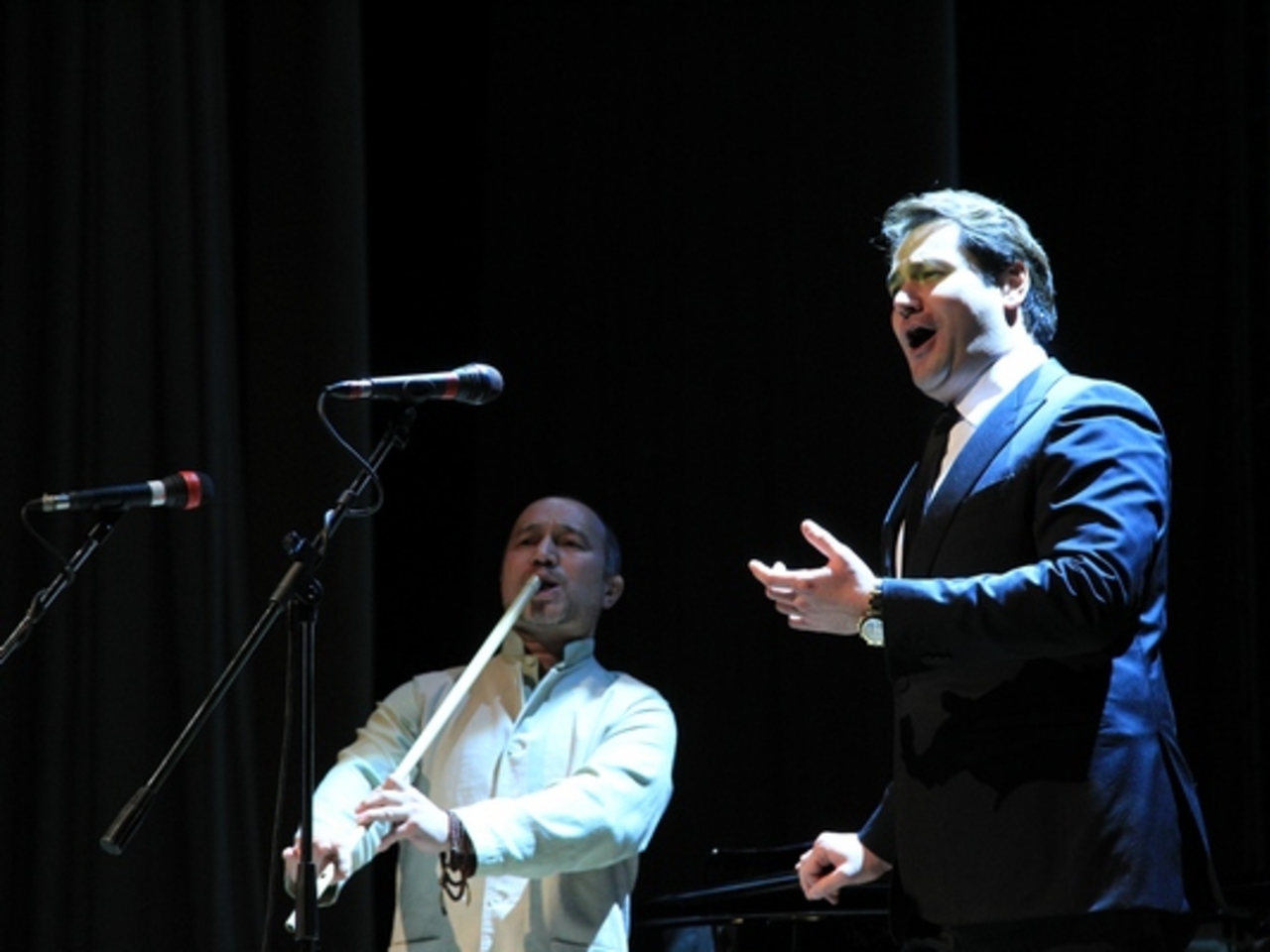 И вот она — долгожданная встреча! На сцену выходят народный артист Башкортостана и Татарстана, обладатель премии «Грэмми», солист Мариинского театра и звезда Метрополитен-оперы Ильдар Абдразаков и солист Мариинского театра, народный артист Башкортостана Аскар Абдразаков. Аккомпанирует им концертмейстер театра Ла Скала Мзия Бахтуридзе.