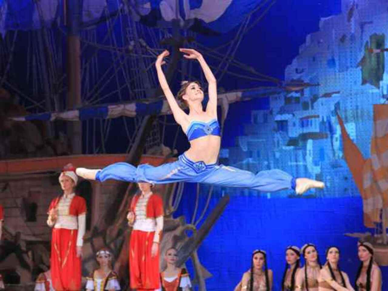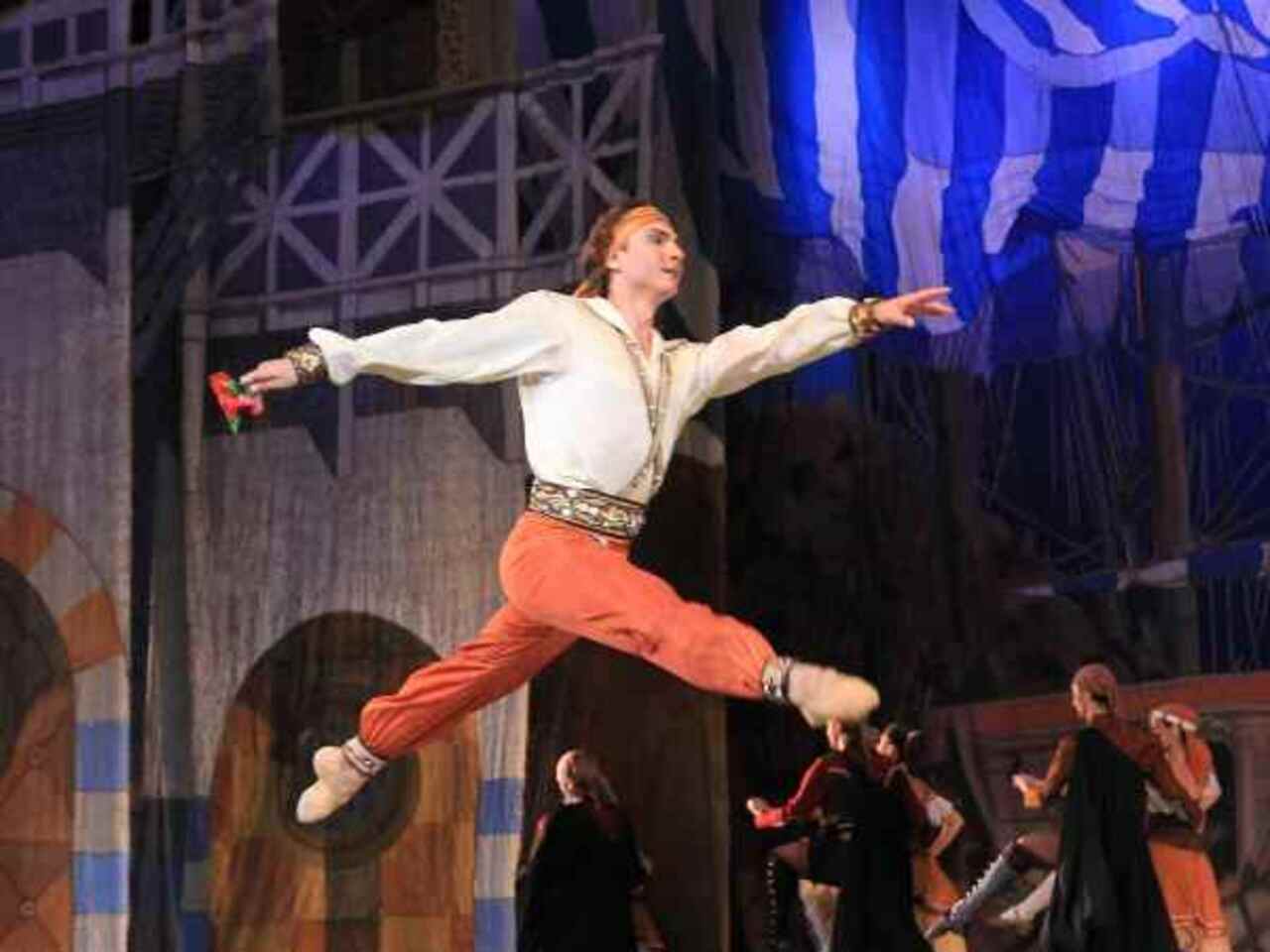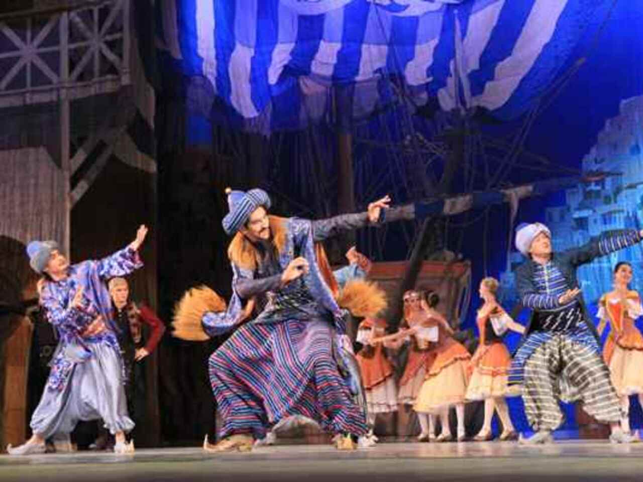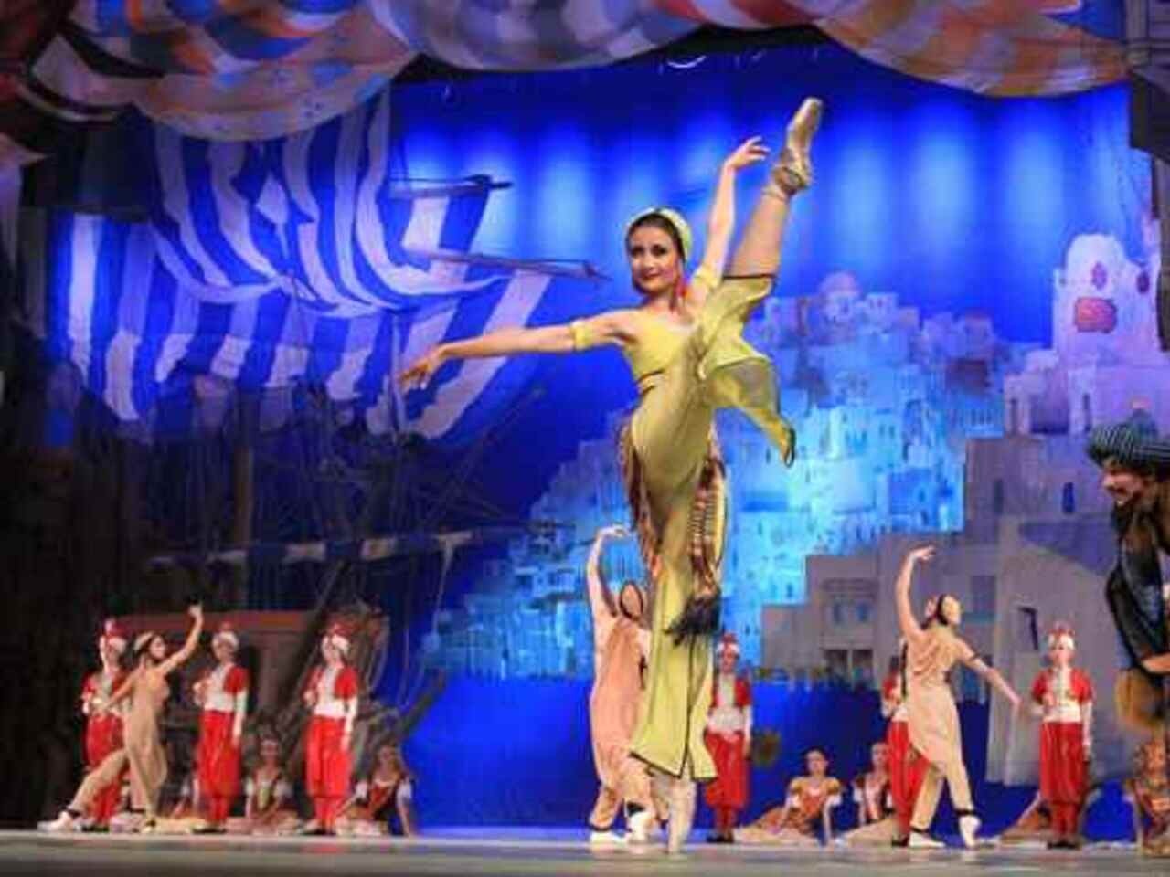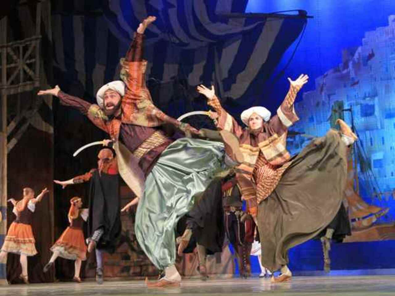 Балет на музыку Адольфа Адана в постановке легендарного хореографа Юрия Григоровича напоминает приключенческий фильм с захватывающим сюжетом из разряда восточных сказок. Отчаянные пираты, предприимчивые работорговцы, придирчивые купцы, прекрасные наложницы, суета невольничьего рынка, роскошь дворцовых интерьеров — спектакль буквально погружает в атмосферу загадочного Востока.