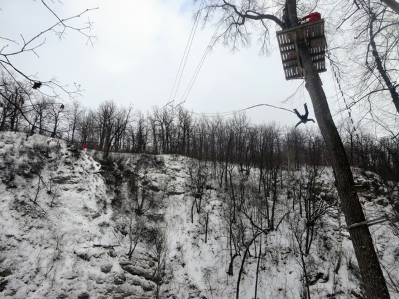 — На прыжок с дерева в среднем уходит порядка пяти минут, — продолжает Александр. — За это время человек успевает надеть снаряжение, подняться по лестнице, спрыгнуть вниз, снять снаряжение. Бывает, что человек долго не может решиться прыгнуть или долго поднимается по лестнице, но это уже не от нас зависит.