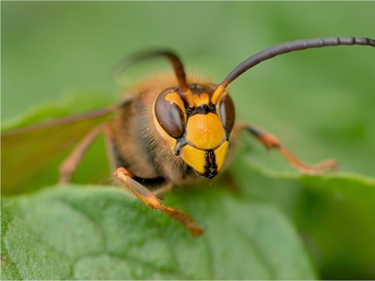 Очень долго я ловил шершня. Они прилетают на виноград — пить сок. Виноград уже дозрел, я охотился-охотился, но нормальный снимок сделать не смог. А однажды пошел в теплицу, смотрю — сидит мой шершень на картофельной ботве. Я вернулся в дом за фотоаппаратом, он меня ждал. А потом позировал. Очень симпатичный.
