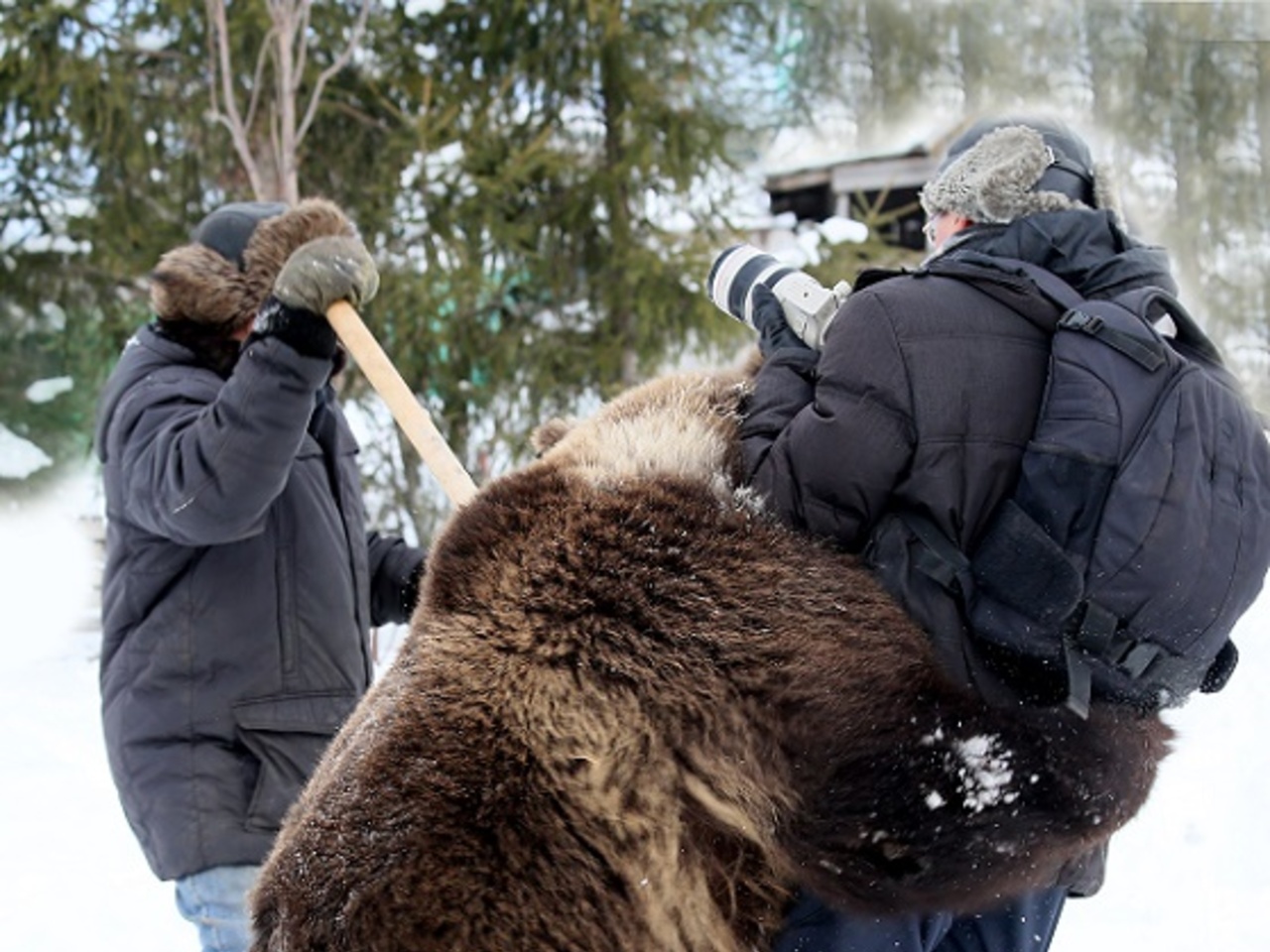 — Медведь ко мне подскочил, меня обнял и дышит мне в ухо, — рассказывает фотограф. — Хотел, наверное, выразить свои теплые чувства. А зверь здоровенный, так меня сжал, что я чуть дышал. Первым делом я фотоаппарат над головой поднял, чтобы зверь его не загрыз. О том, что он меня может загрызть, я подумал во вторую очередь. Но двинуться в его объятьях я не мог. Так мы и стояли, обнявшись, потом испуганный хозяин подбежал, засунул палку между мной и медведем и, как рычагом, нас разъединил. Я еле отдышался. Но с тех пор прошло уже много времени, и сейчас я рассказываю об этом со смехом.