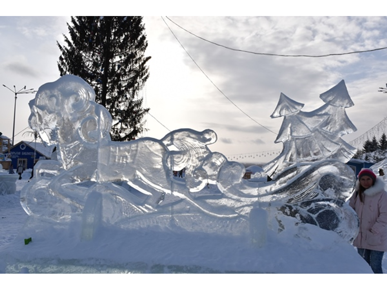 Первое задание оказалось непростым. Трем участникам команды надо было сосчитать, сколько животных, птиц и людей изображено на ледовых скульптурах, расставленных вокруг центральной елки. В это время четвертому человеку надо было добежать до памятника Салавату Юлаеву и сделать на его фоне селфи. Естественно, все это надо было провернуть как можно быстрее, чтобы опередить соперников.