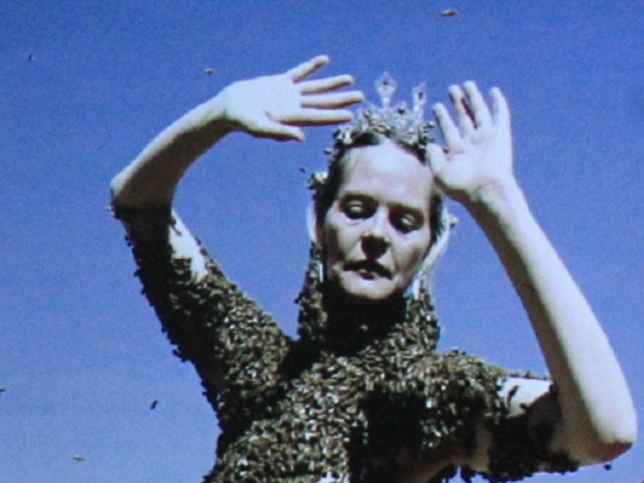Следующая фигура, признанная в мировом искусстве — Sara Mapelli. Эту женщину называют «Пчелиной королевой», поскольку она общается с пчелами методом медитативного танца. Сара танцует в «футболке», состоящей из нескольких тысяч пчел (кроме того, насекомые покрывают шею и голову женщины). Такой метод помогает американке активизировать жизненную энергию и слиться с природой. По мнению «Пчелиной королевы», не стоит бояться природы — нужно становиться к ней как можно ближе. Sara Mapelli очень популярна, у нее множество поклонников, а ее танец признан видом искусства. Уже довольно долго Сара гастролирует со своим «пчелиным танцем» по разным странам. Более того — пчелиную энергию она использует в терапевтических целях.